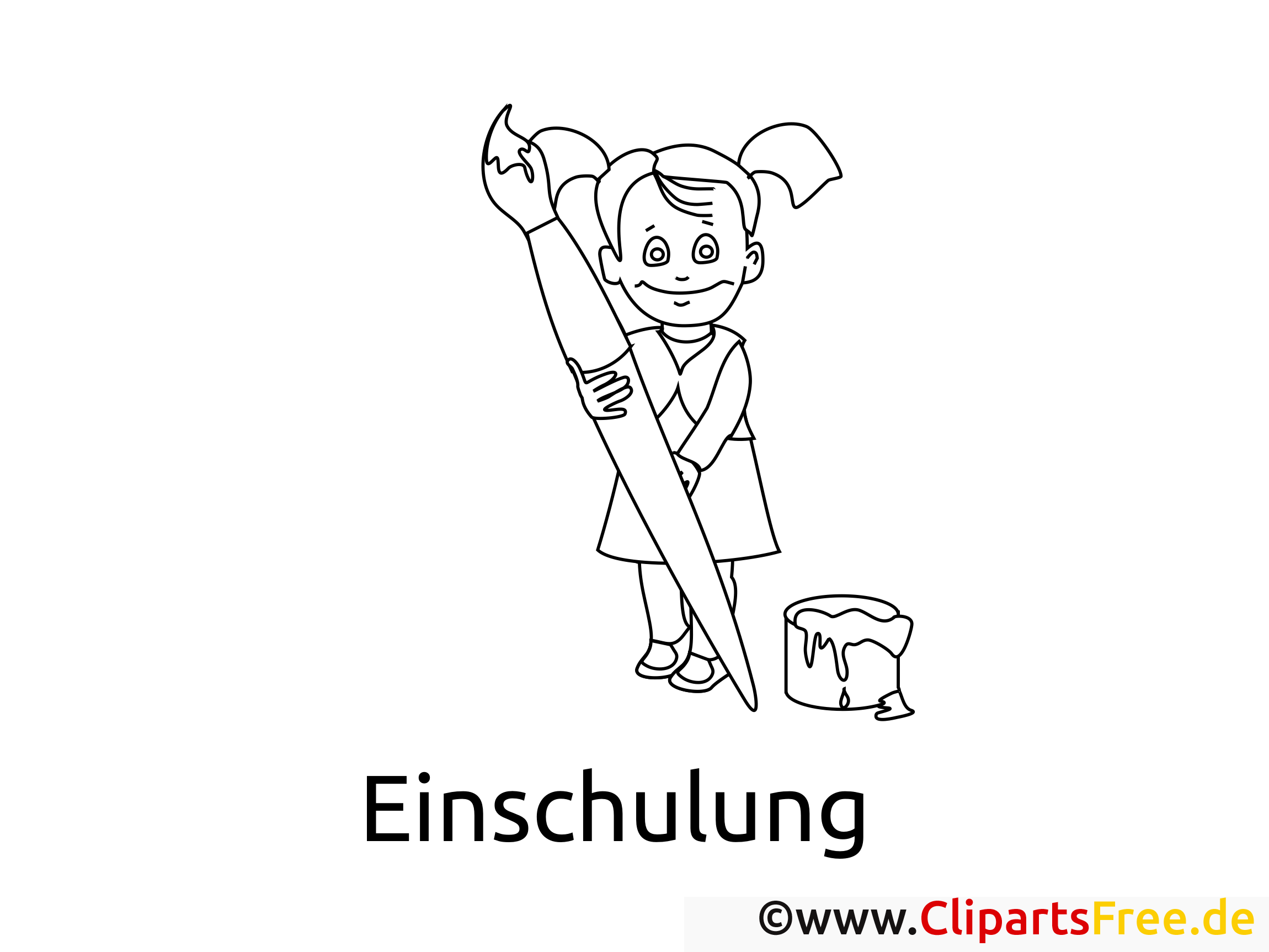 Das Ausmalbild zeigt ein fröhliches Mädchen, das voller Vorfreude vor einer großen Schultafel steht. In der Hand hält sie einen riesigen Pinsel, mit dem sie sicher schon viele kreative Abenteuer erlebt hat. Der kleine Eimer mit Farbe daneben deutet darauf hin, dass es hier um Kunst und viel Spaß geht! Ihre leicht verwuschelten Haare und das Lächeln geben dem Bild eine lebendige Ausstrahlung. Die Darstellung ist einfach, aber sehr ansprechend für Kinder, die nun in die Schule kommen.