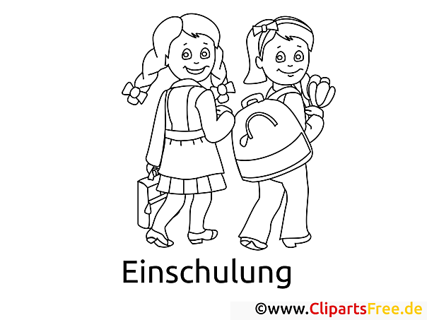 Das Motiv zeigt zwei fröhliche Kinder, die sich zur Einschulung bereit machen. Die eine – mit zwei Zöpfen – trägt ein hübsches, helles Kleid, während die andere mit einem Rucksack und einem Geschenkpäckchen in der Hand zu sehen ist. Das Lächeln auf ihren Gesichtern strahlt pure Freude aus. Da wird einem ganz warm ums Herz, wenn man an die Aufregung und Neugier denkt, die für viele Kinder dieser besondere Tag mit sich bringt. Die Ausmalvorlage bietet eine tolle Möglichkeit, die eigenen Farben und kreativen Ideen zum Leben zu erwecken.