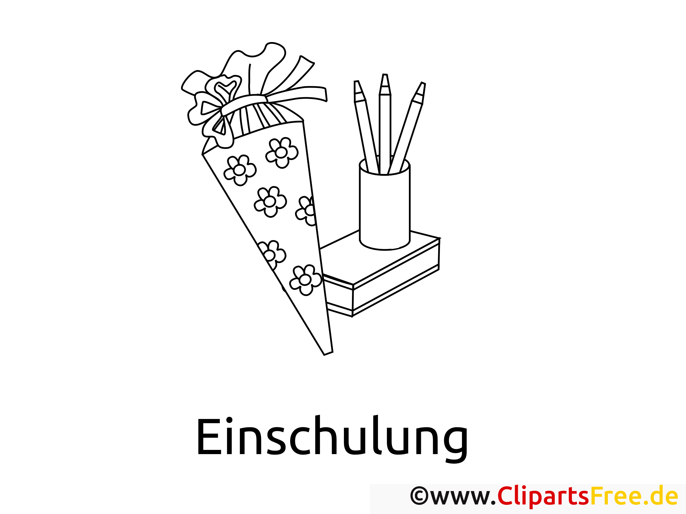 Das Bild zum Ausmalen zeigt eine fröhliche Szene rund um die Einschulung. Im Mittelpunkt steht eine liebevoll gestaltete Schultüte, die mit kleinen Blümchen verziert ist. Darunter liegt ein Stapel Bücher, symbolisch für das Wissen, das die neuen Schüler aneignen werden. Neben den Büchern steht ein Becher, gefüllt mit bunten Buntstiften. sozusagen, Das alles strahlt eine einladende, nahezu feierliche Stimmung aus, die nicht nur Kinderherzen höher schlagen lässt. halt, Eine schöne Malvorlage, um bastel- und ausmalbegeisterte Kids in die Welt des Lernens zu entführen!