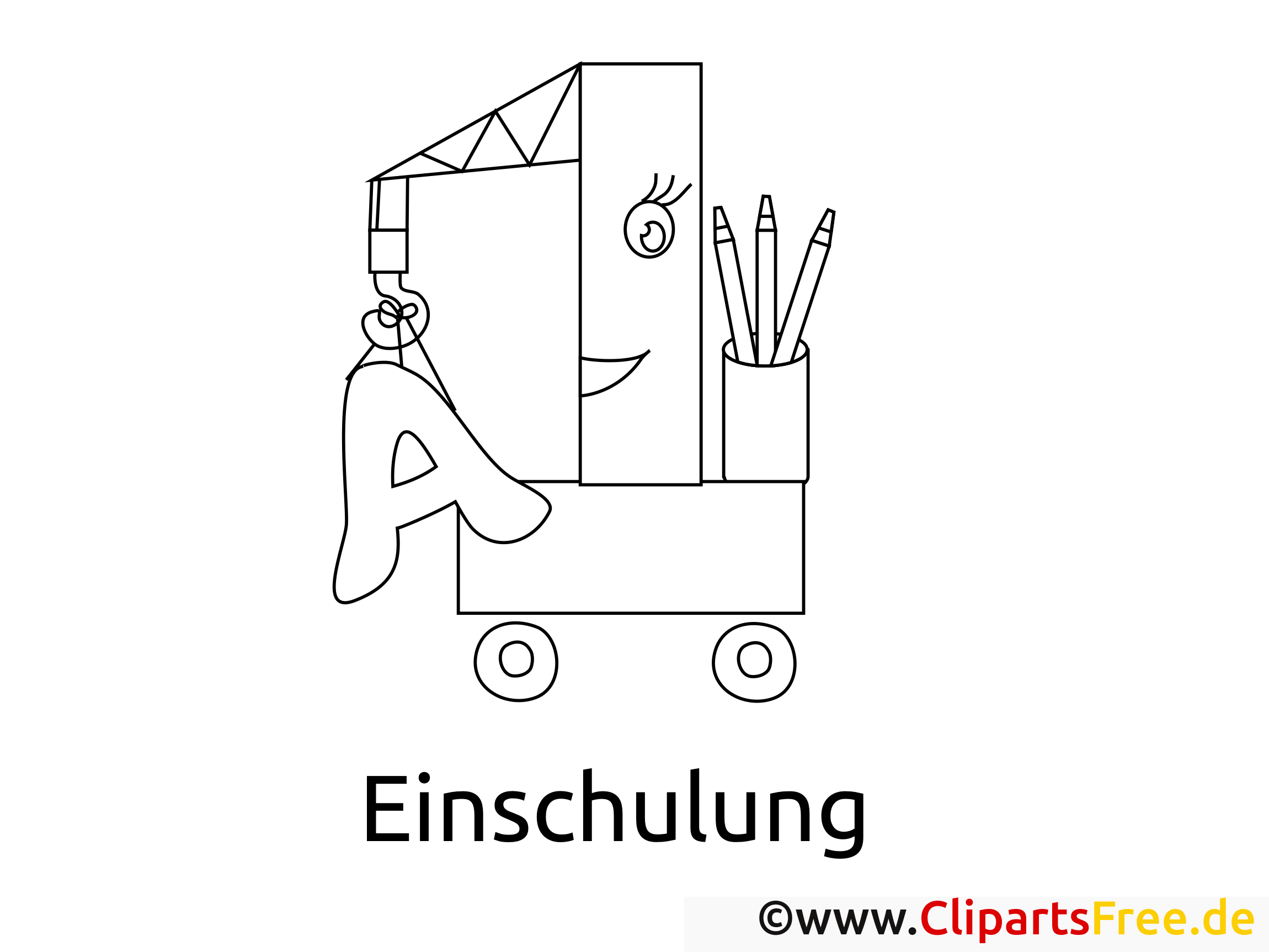 Das Ausmalbild zeigt eine fröhliche Einschulungsszene. Ein zweifacher Kran hebt einen großen, lächelnden Block, der wie ein freundlicher Schulanfänger aussieht. Neben ihm stehen ein paar lustige Buntstifte, die darauf warten, in Aktion zu treten. Der Buchstabe „A“ ist auch dabei – toll, oder? Das macht das Bild besonders gut für die Kleinen, die sich darauf freuen, das Schreiben und Lesen zu lernen. Es weckt Vorfreude und vermittelt das Gefühl von Neuem und Aufregung.