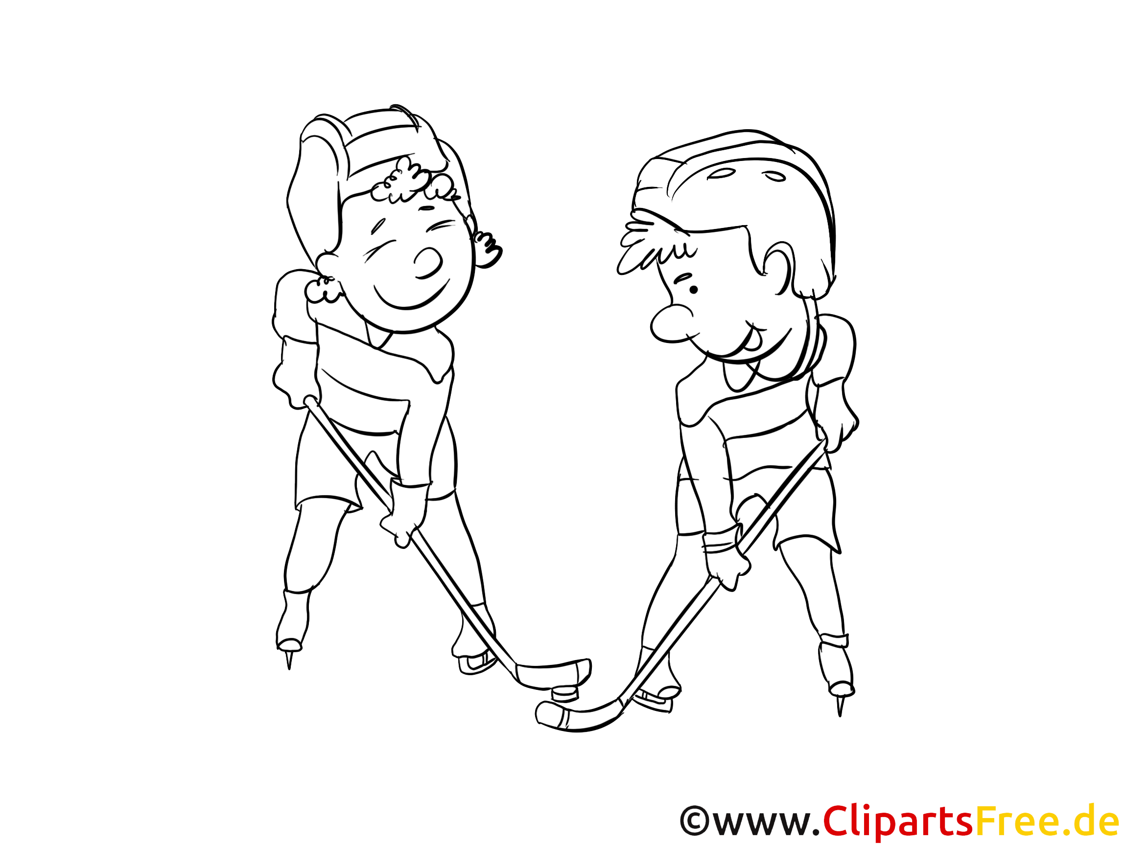 In dieser Malvorlage siehst du zwei fröhliche Kinder, die mit viel Begeisterung Eishockey spielen. Die beiden Jungs tragen große Helme und coole Sporttrikots, und sie scheinen voll in Action zu sein. Man kann fast die Aufregung spüren, während sie sich um den Puck duellieren. Für kleine Eishockey-Fans vielleicht ein perfektes Motiv! Ihre Gesichtsausdrücke sind einfach klasse – das eine Kind grinst breit, das andere strahlt vor Freude. Toll, oder?