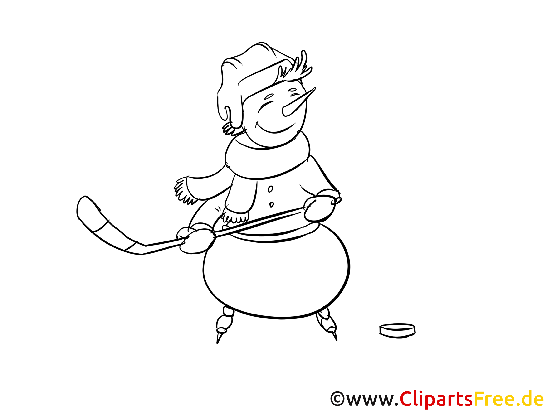 Original-Bild: Schneemann spielt Eishockey Malvorlage Winter-Sport