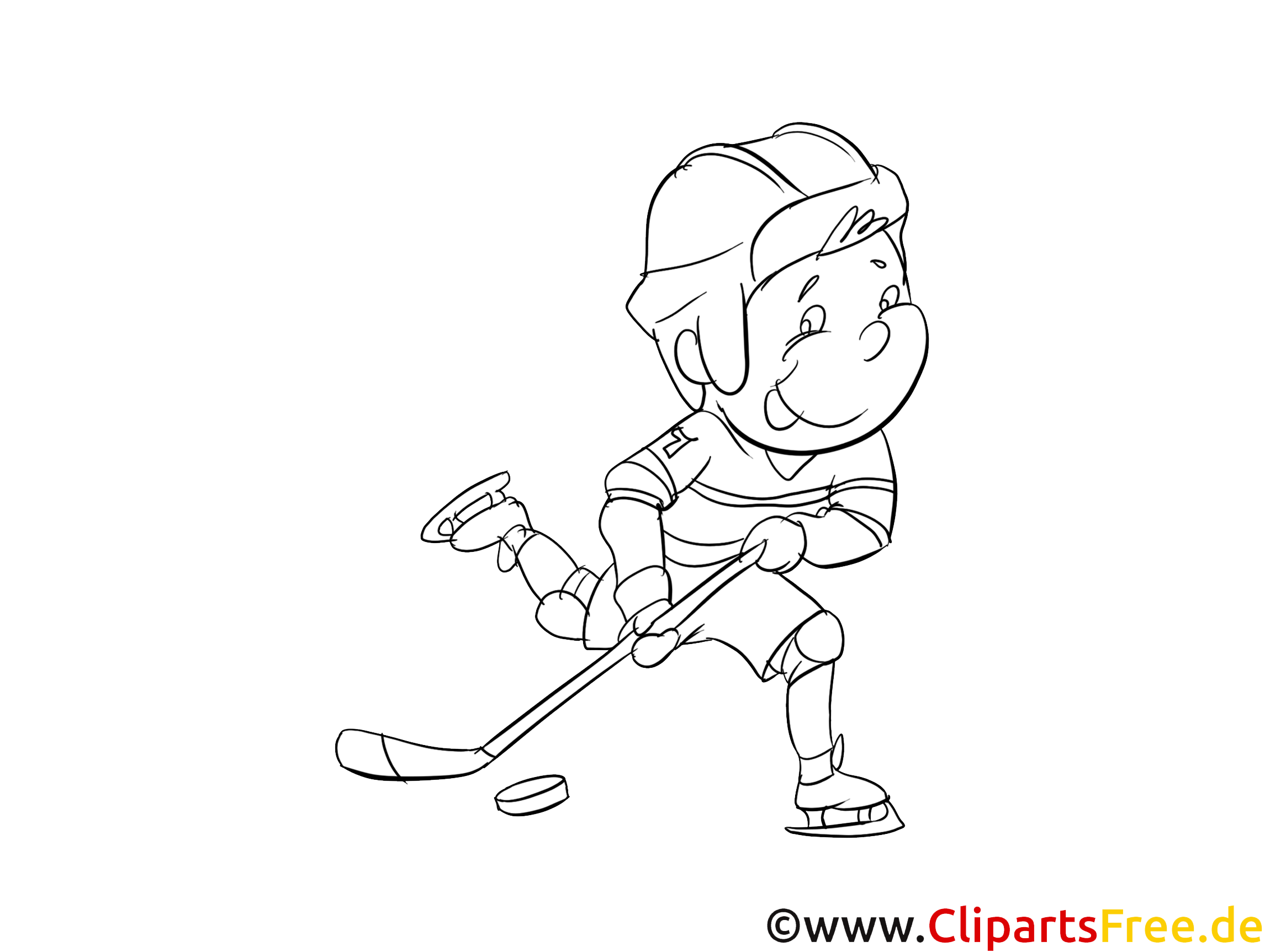 Hier sehen wir einen kleinen Hockeyspieler, der mit voller Energie auf dem Eis unterwegs ist. Er trägt einen Helm und hält seinen Schläger bereit. Das Bild strahlt eine fröhliche, dynamische Stimmung aus. Die große, lachende Mundpartie des Spielers zeigt deutlich, wie viel Spaß ihm das Spiel macht. In der Nähe liegt ein kleiner Puck, ganz aufgeregt, darauf wartet er, dass der Spieler ihn trifft … . Es ist ein tolles Ausmalbild für alle kleinen Sportbegeisterten?!. Man kann den Hockeyspieler nach Lust und Laune gestalten, vielleicht mit bunten Farben oder glitzernden Stiften.