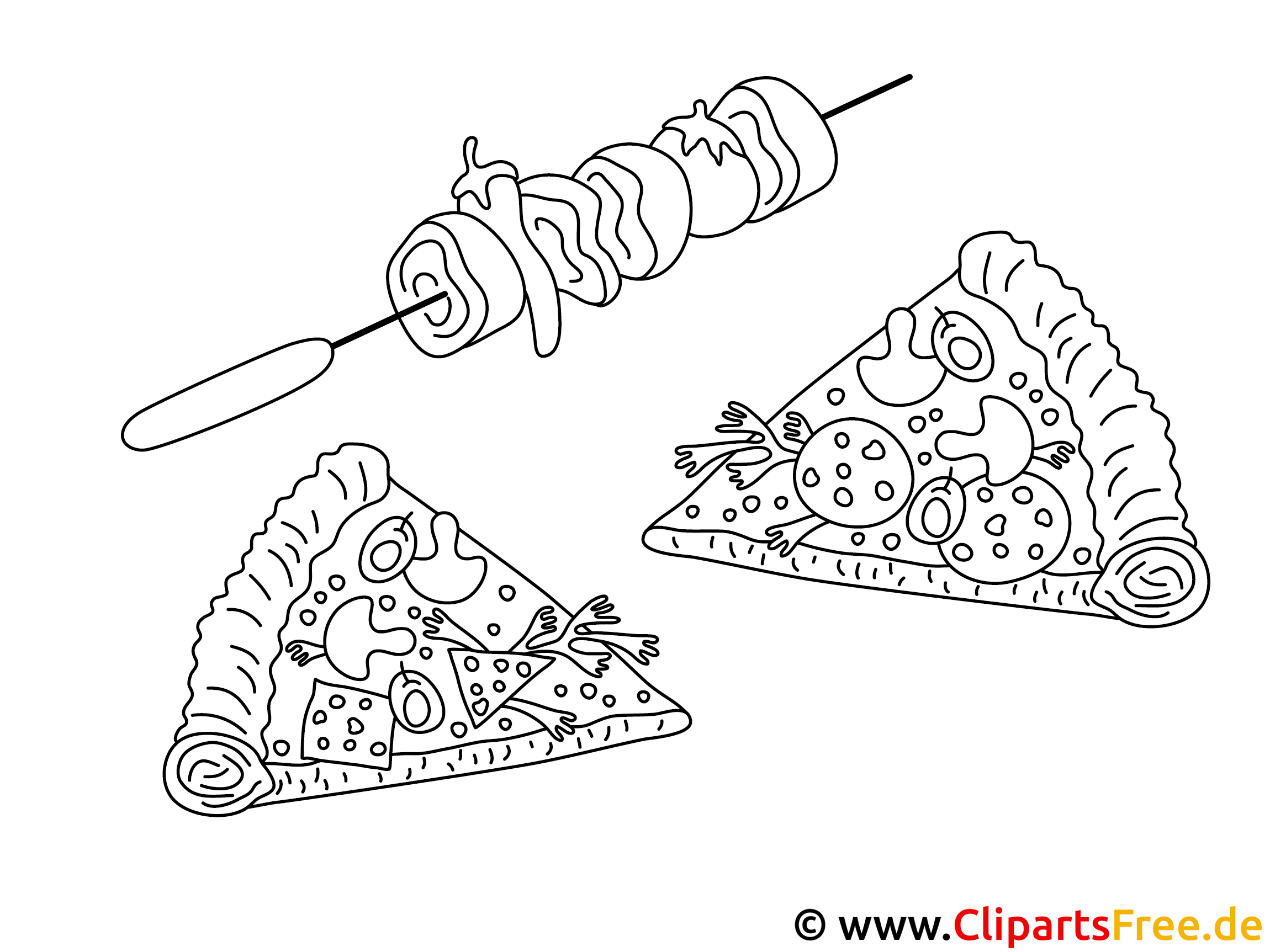 Schau dir dieses coole Motiv an! Da sind zwei leckere Pizzastücke, die direkt zum Ausmalen einladen. Mit viel Freude kannst du die verschiedenen Zutaten ausmalen: Vielleicht magst du mit grünen Paprika, oder roten Peperoni arbeiten? Und oh, schau mal, da ist auch ein Grillspieß mit bunten Gemüsestücken. Das sieht so appetitlich aus! Duftende Pizza und frisches Gemüse, macht einfach gute Laune und ist perfekt für kleine Feinschmecker.