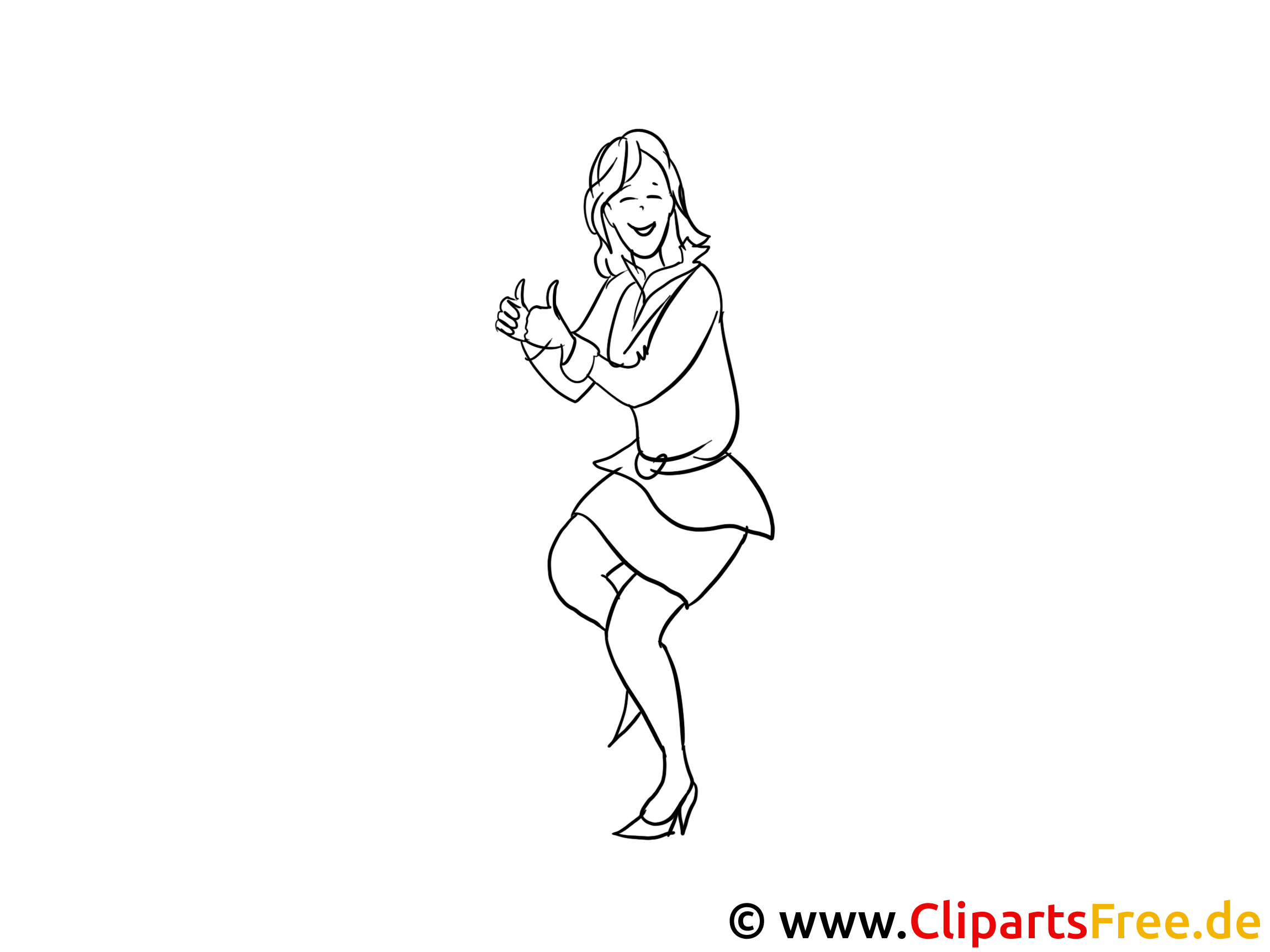 Stell dir vor, eine fröhliche Frau tanzt, ja genau, so richtig voller Lebensfreude! Ihr Gesicht strahlt, als ob sie das ganze Glück der Welt in sich trägt. Die Arme sind locker, und sie hält die Hände, als würde sie jemand anfeuern, vielleicht bei einem Wettbewerb oder einer tollen Feier. Ihr Kleid sieht schick aus und die Haltung – einfach klasse! Diese Vorlage, die zum Ausmalen einlädt, könnte man ganz bunt gestalten oder mit sanften Aquarellfarben. Da sind der Fantasie wirklich keine Grenzen gesetzt.