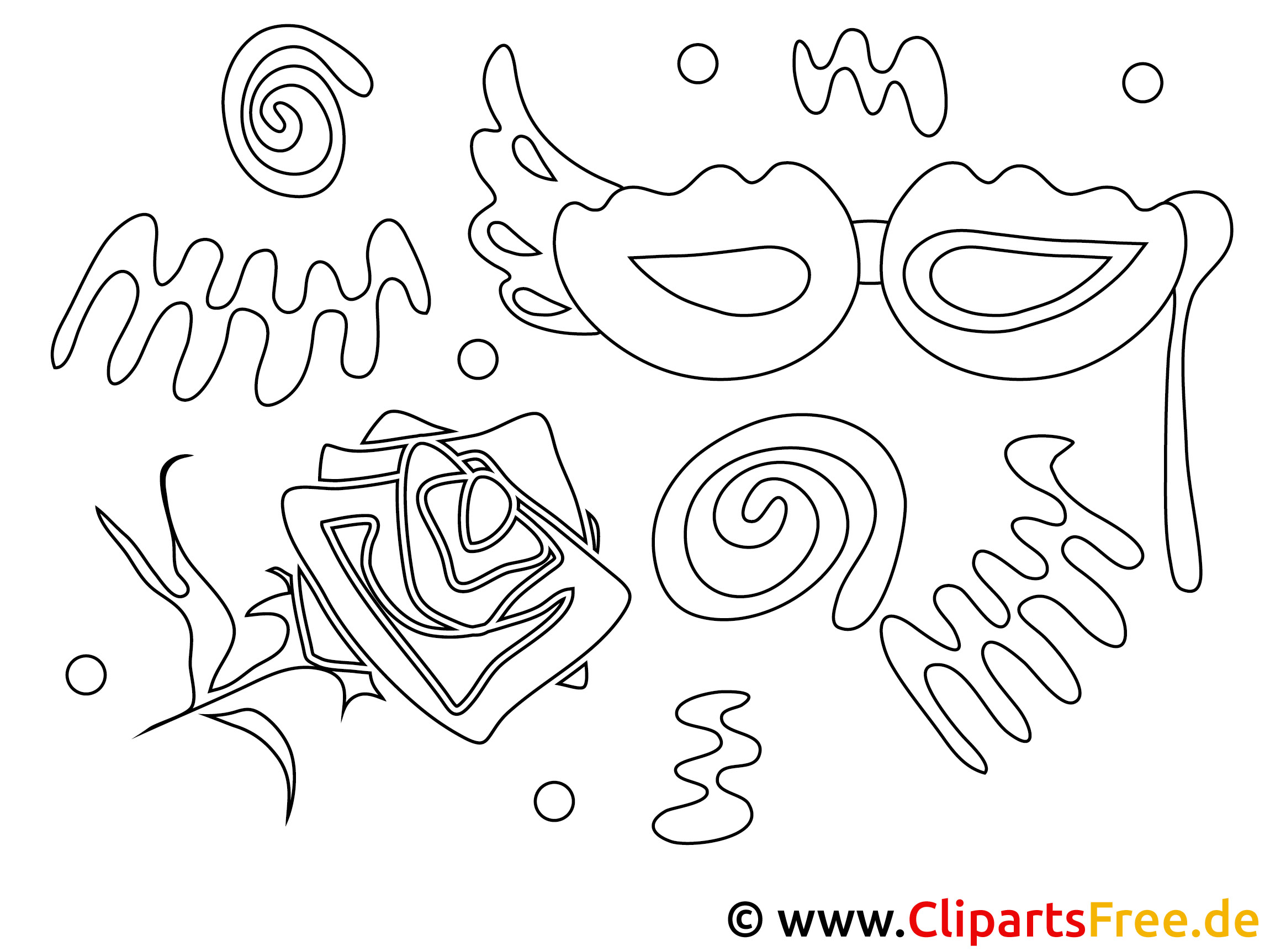 Schau dir dieses spannende Ausmalbild an! Es zeigt eine Reihe von kreativen und verspielten Elementen. Du siehst eine prächtige Rose, die in feinen, geschwungenen Linien dargestellt ist. Daneben prangt eine auffällige Maske, vielleicht für einen Ball oder eine Feier. Und dann sind da noch viele witzige Spiralen und witzige Formen. Die verschiedenen Motive machen es zu einem echten Erlebnis beim Ausmalen–. Überall gibt es etwas zu entdecken, und jeder kann hier seiner Fantasie freien Lauf lassen!