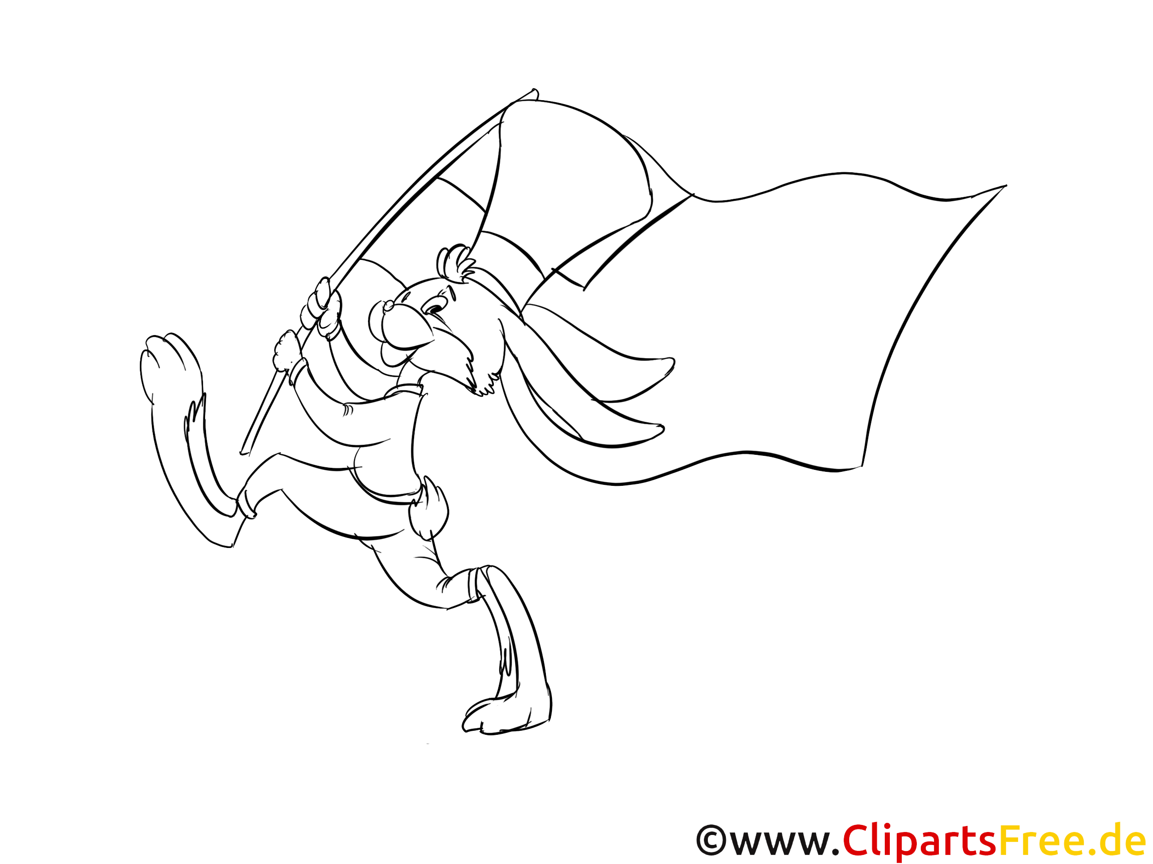 Hase mit Fahne - Vorlagen zum Ausmalen und Ausdrucken gratis