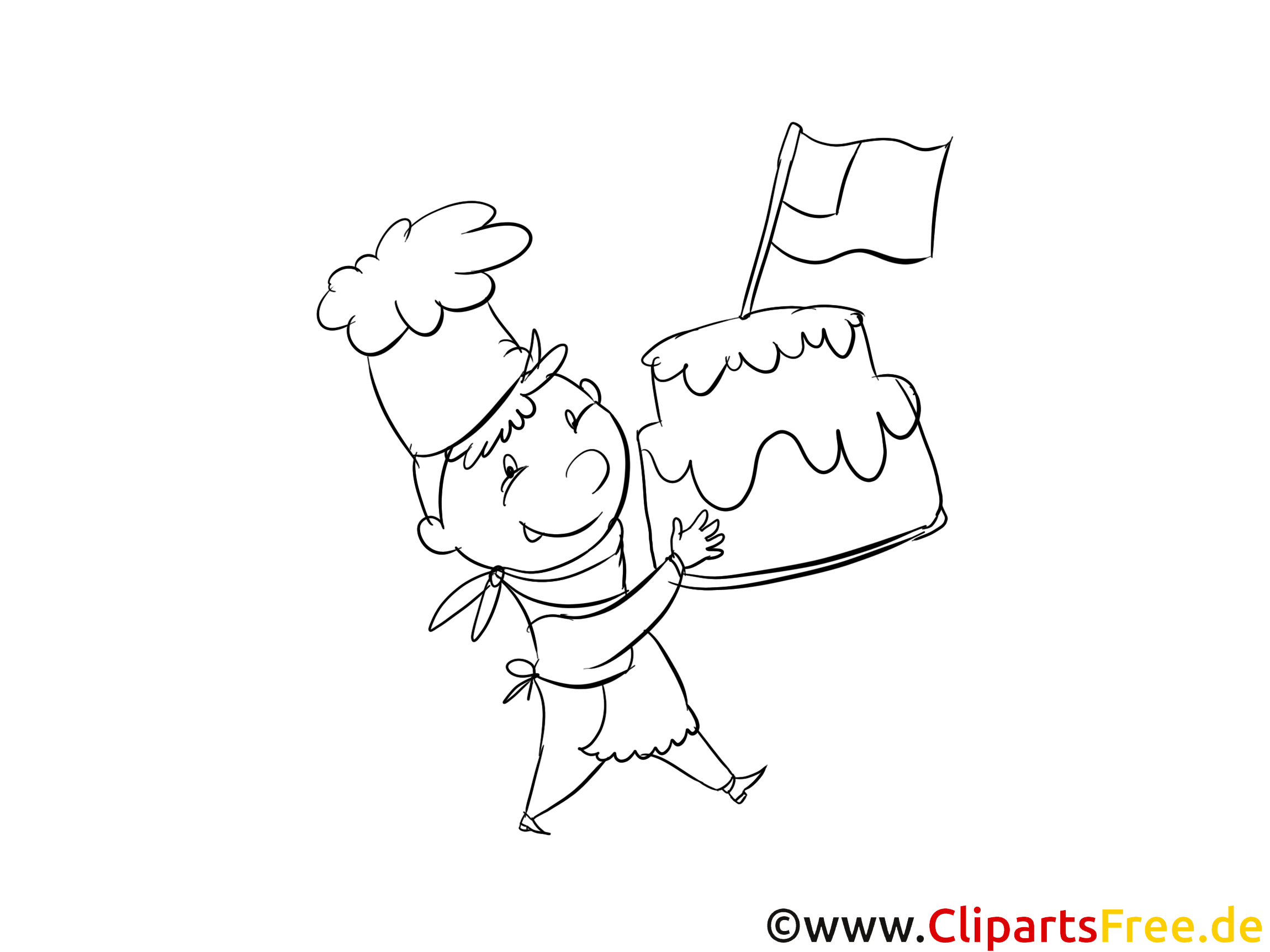 Kleiner Koch mit Torte - Vorlagen zum Ausmalen und Ausdrucken gratis