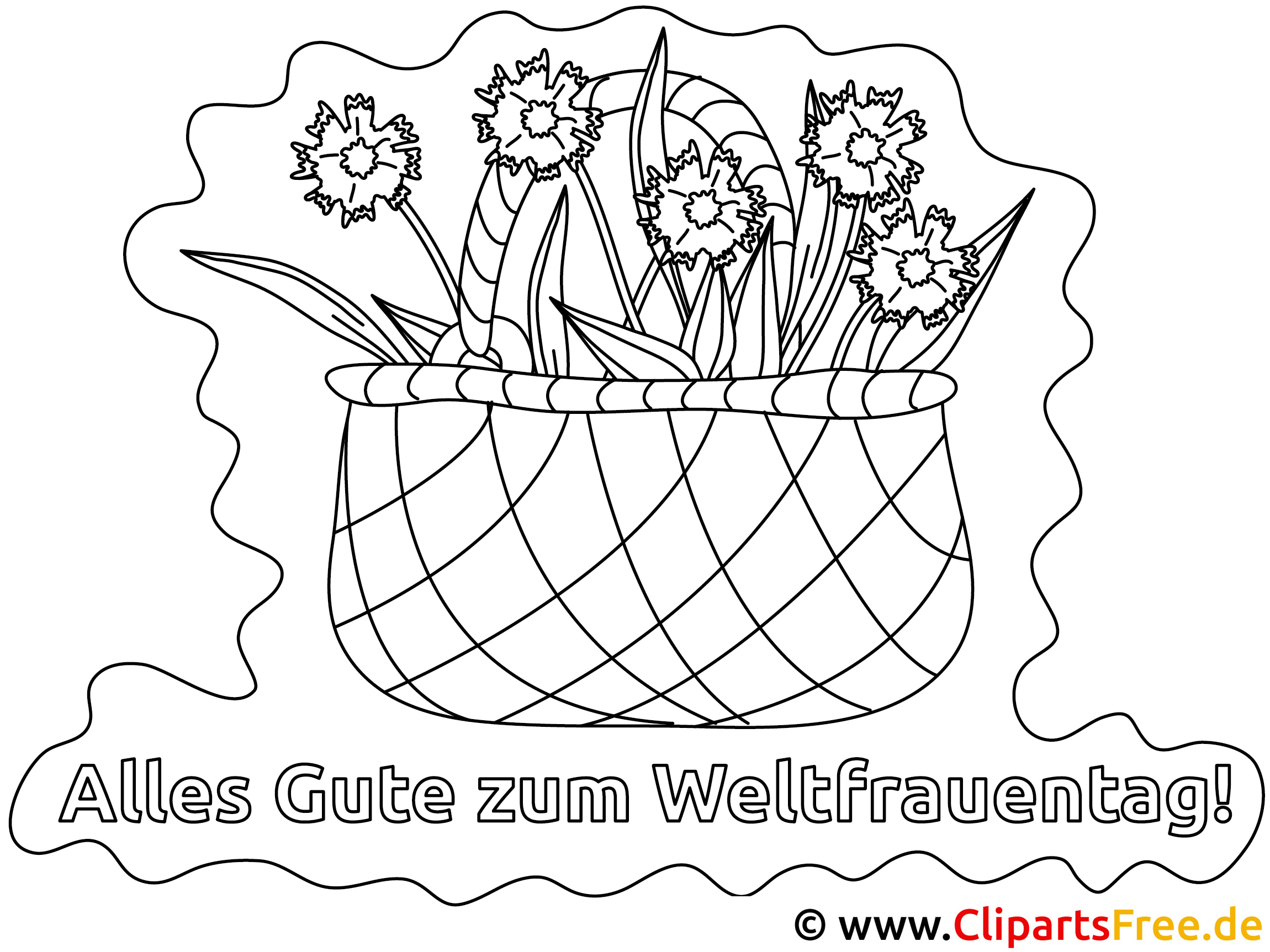 Das Ausmalbild zeigt einen hübschen Korb voller farbenfroher Blumen – einfach zauberhaft! Besonders sind die verschiedenen Blütenarten zu sehen, die sich fröhlich in die Höhe recken. Um den Korb liegen sanfte Blätter, und die gesamte Komposition vermittelt ein Gefühl von Frische und Lebensfreude. Oben steht in fröhlicher Schrift „Alles Gute zum Weltfrauentag!“, das macht das Bild gleich noch viel persönlicher. Perfekt, um Danke zu sagen oder um eine kleine Aufmerksamkeit für einen lieben Menschen zu gestalten.