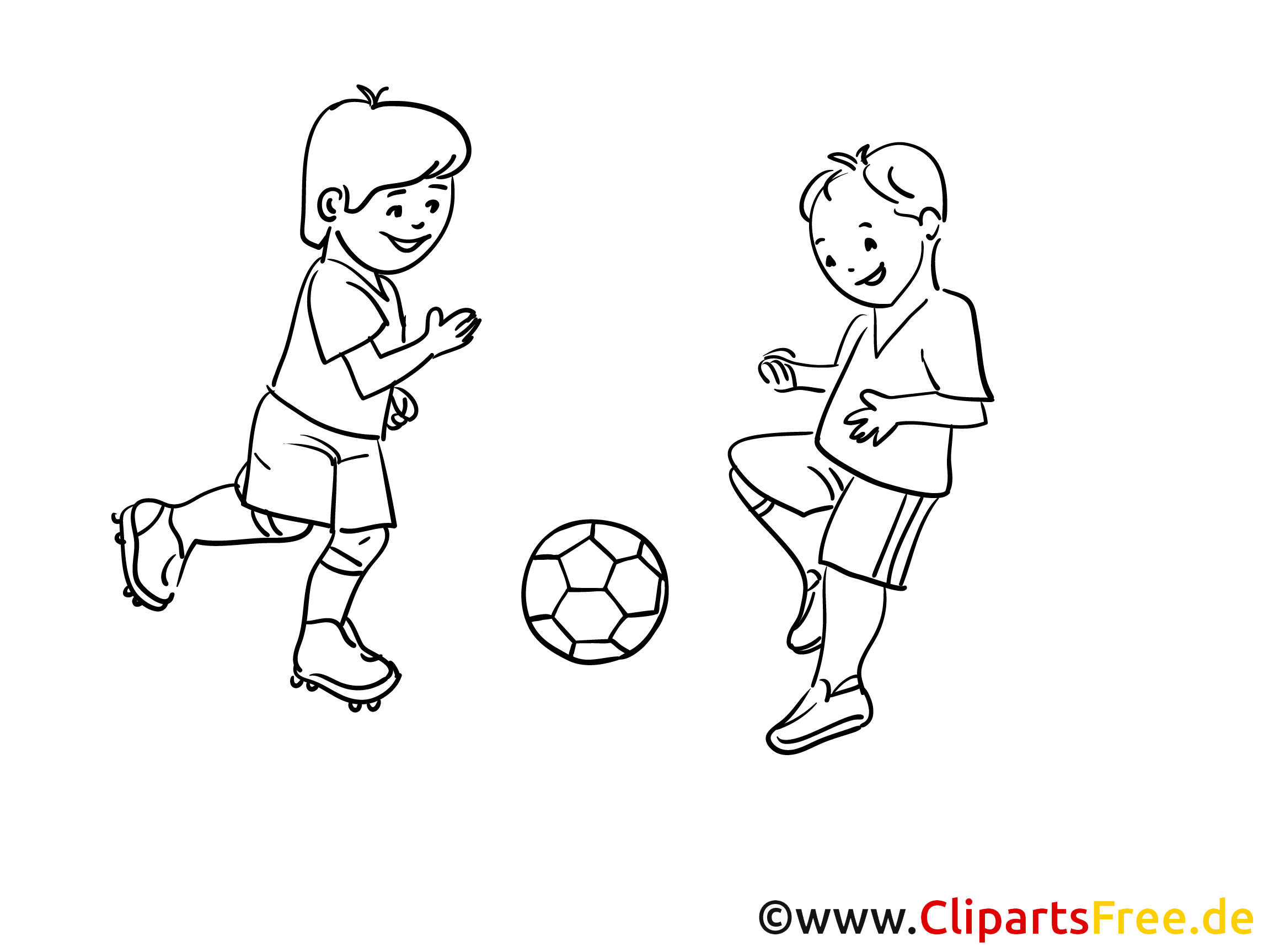 In diesem fröhlichen Ausmalbild sind zwei Kinder zu sehen, die miteinander Fußball spielen. Eines der Kinder hat ein breitgeschlagenes Grinsen im Gesicht und scheint gerade den Ball zu kicken, während das andere Kind voller Konzentration zuschaut, bereit für den nächsten Spielzug. Der Ball, wie sollte es auch anders sein, ist gut sichtbar in der Mitte der beiden. Ein kleiner Gegenstand, aber voller Energie und Freude – so viel Leidenschaft steckt in diesem Bild. Man sieht die verschiedenen Bewegungen, die die Kinder machen. Ihre Kleidung ist sportlich, passend für ein tolles Spiel im Freien.