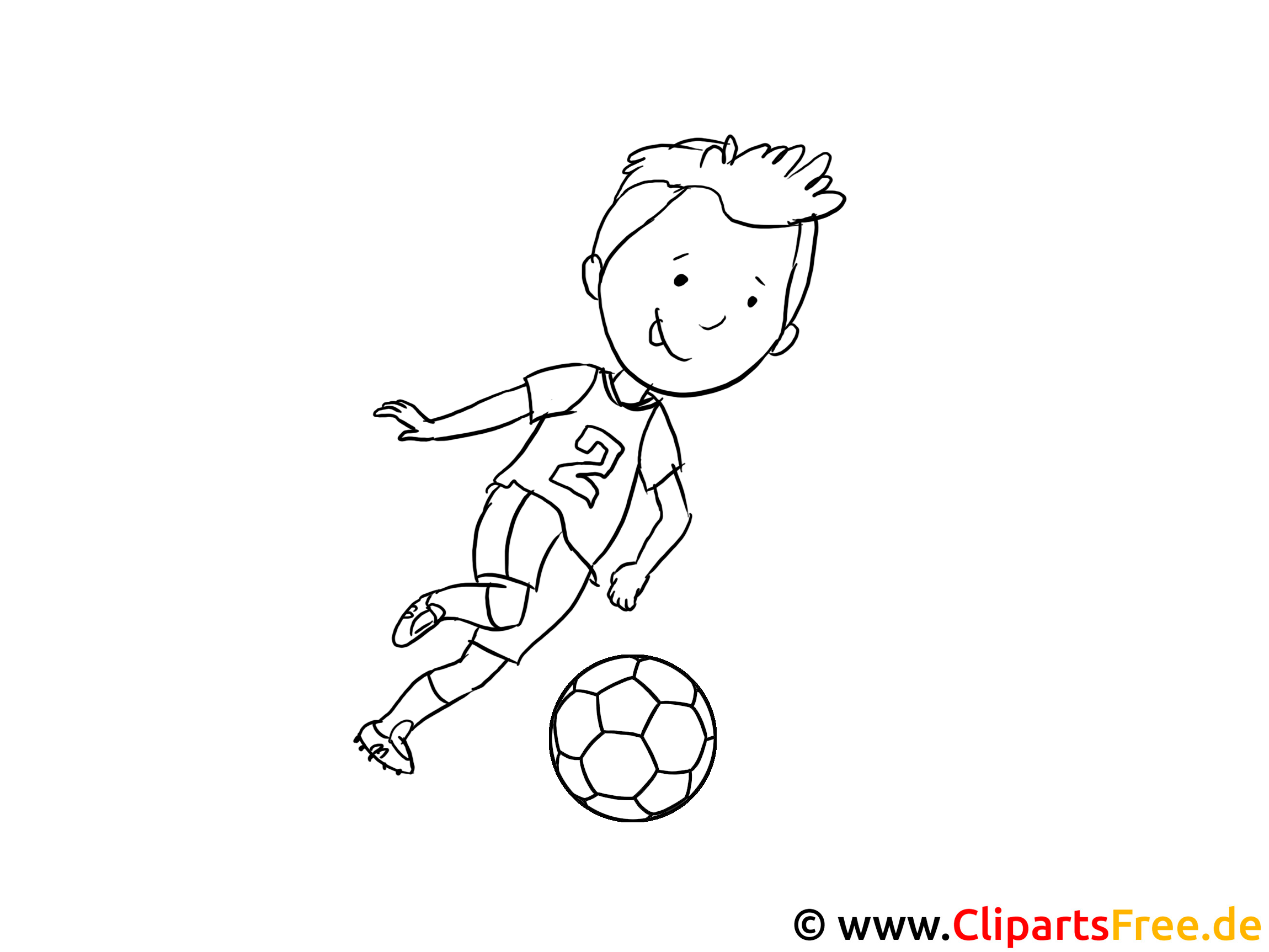 Schau dir mal dieses fröhliche Bild an! Ein junger Kicker, wahrscheinlich in der Grundschule, rennt mit einem breiten Grinsen über den Rasen. Er trägt ein sportliches Trikot mit der Nummer zwei – ziemlich cool, oder? Der Fußball, den er gerade anspielt, scheint echt schnell zu rollen. Und seine Haare, die wippen lustig mit, während er in Bewegung ist. Das ganze Motiv strahlt pure Freude und Unbeschwertheit aus. Es lädt die kleinen Malfreunde ein, ihre Kreativität auszuleben, während sie das Bild zum Ausmalen gestalten.... halt, Man könnte sagen, es ist ein perfektes Motiv für alle kleinen Fußballer da draußen!