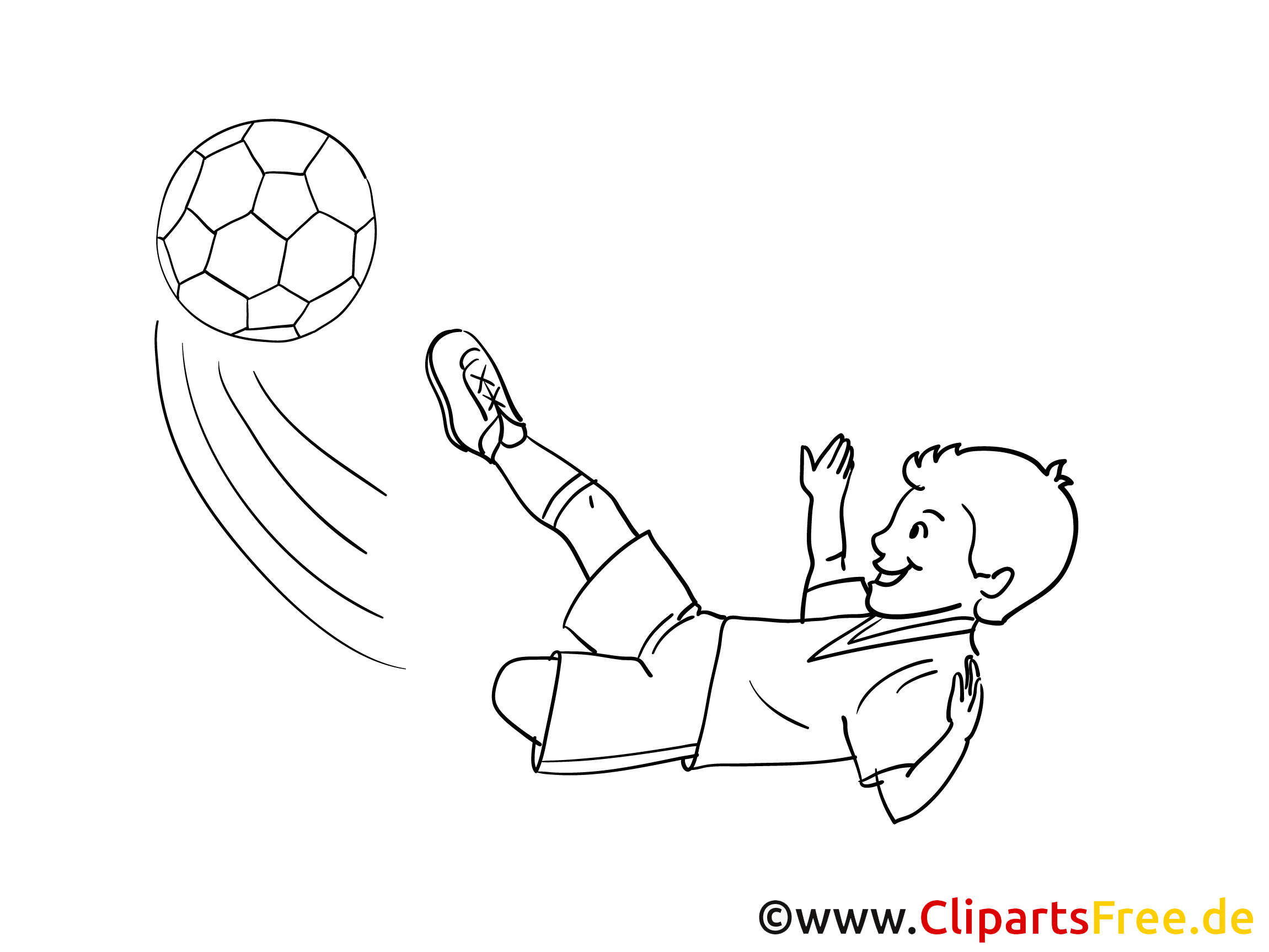 Hier siehst du ein ganz schönes Ausmalbild! Es zeigt einen fröhlichen Jungen, der voller Energie einen Fußball kickt. Er liegt leicht auf dem Boden, mit einem strahlenden Lächeln im Gesicht. Man kann fast das Gefühl haben, dass er gleich aufspringt, um das Spiel zu genießen. Der Ball fliegt durch die Luft – einfach klasse! Das Bild ist perfekt, um in die Welt des Fußballs einzutauchen. Mit ein paar bunten Farben wird das Motiv lebendig und wird den kleinen Künstler sicher zum Lachen bringen.