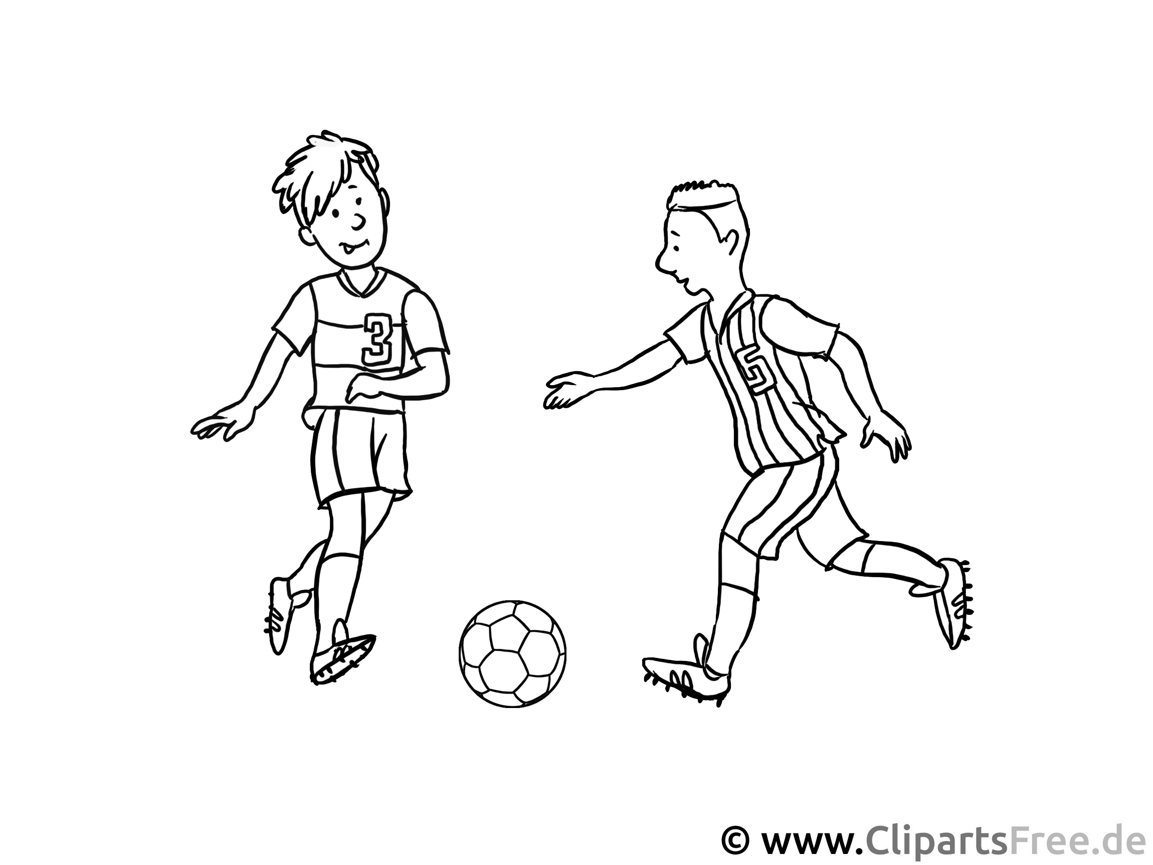 In dieser tollen Malvorlage siehst du zwei Kinder beim Fußballspielen. Der eine Junge, mit einem breiten Lächeln im Gesicht, trägt ein gestreiftes Trikot. Du erkennst die Nummer drei auf seinem Rücken. Der andere Junge, ganz engagiert, hat ein anderes Trikot – schick, mit senkrechten Streifen und der Nummer fünf. Und natürlich, wie es sich gehört für ein Fußballspiel, liegt ein kleiner Ball zwischen ihnen … . tja, Man merkt richtig, dass sie Spaß haben, und das bringt so eine Freude ins Bild.