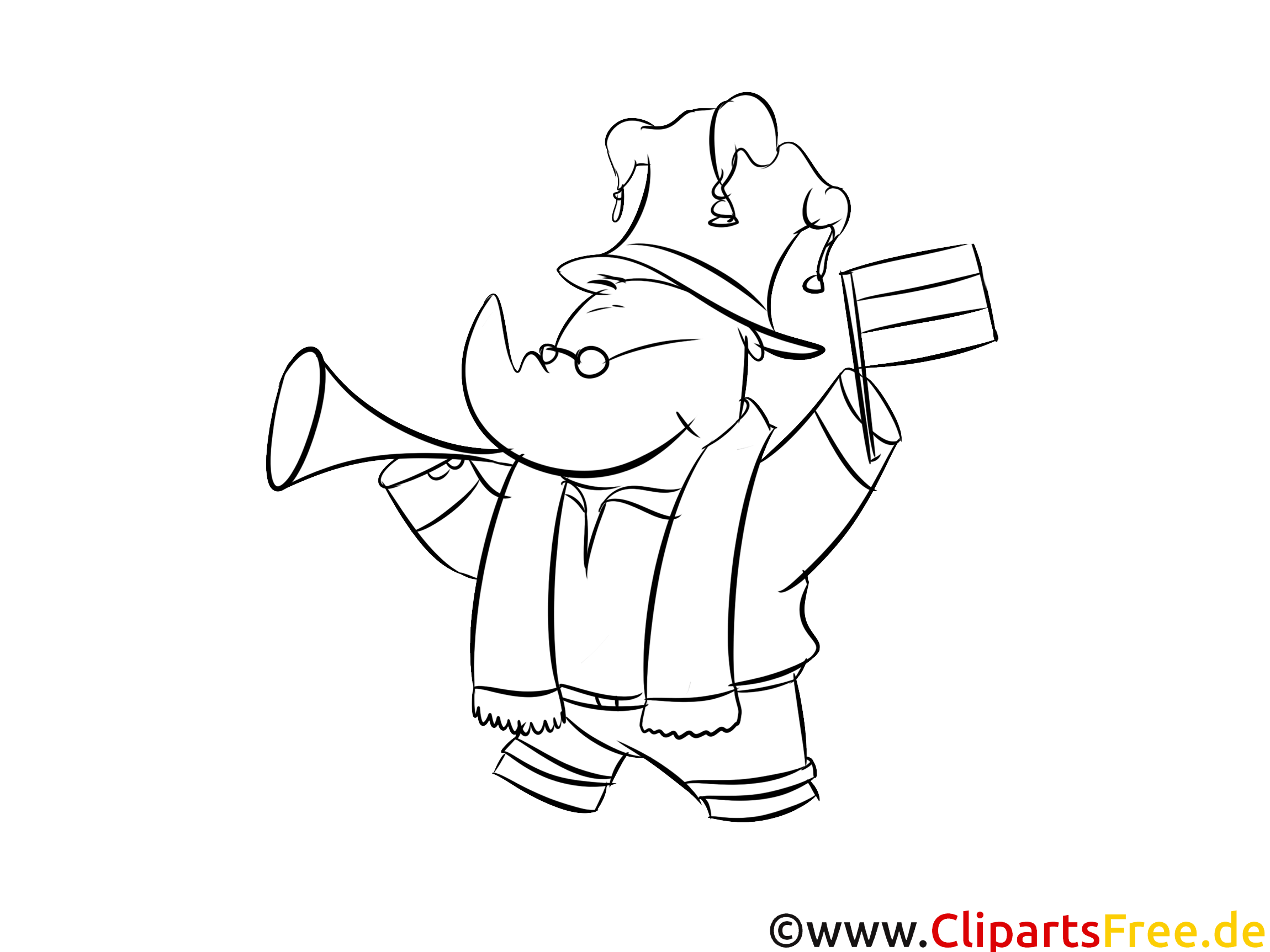Nashorn Sportfan Bild zum Ausdrucken und Ausmalen