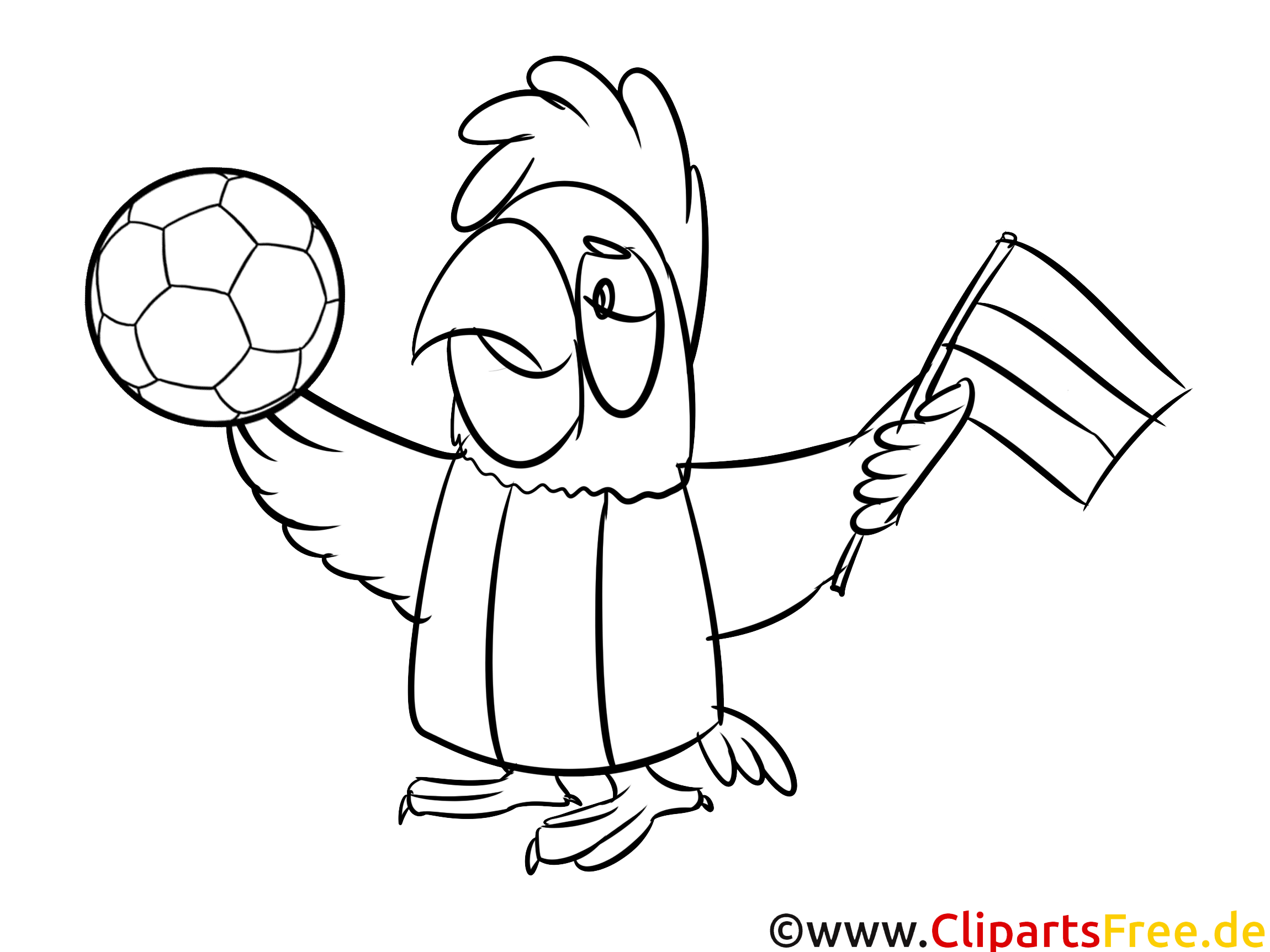 Stell dir einen fröhlichen Papagei vor, der mit einem großen Fußball in einem Flügel und einer kleinen Fahne in dem anderen Flügel herumhüpft. Sein Gesicht strahlt, als ob er gerade ein spannendes Tor geschossen hat! Die Details sind wirklich niedlich: Seine gespreizten Flügel, die Federchen auf dem Kopf und seine großen, aufmerksamen Augen machen das Bild lebendig. Eine tolle Malvorlage für alle kleinen Fußballfans, oder? Es gibt sowohl Platz für Kreativität als auch für Farben – könntest du dir orange oder lila Papageien vorstellen?