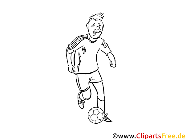 Hier haben wir ein fröhliches Ausmalbild eines Fußballspielers, der gerade in voller Aktion ist. Er läuft mit einer ernsthaften Miene, als würde er auf den Ball zusteuern, um ihn richtig toll zu schießen! Sein Trikot hat die Nummer 9, was ja oft schon ein Hinweis auf einen Stürmer ist. Die langen Socken und der Fußball im Vordergrund machen das Bild besonders lebendig. Man könnte fast das Geräusch des Balls hören, der über den Rasenteppich rollt – ein echt spannendes Motiv!
