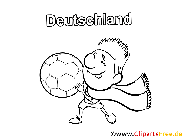 Das Ausmalbild zeigt einen fröhlichen jungen Fußballspieler, der mit einem großen Fußball in der Hand durch die Gegend läuft. Er trägt ein einfaches, süßes Fußballtrikot und gibt richtig Energie! Ihre einzähnigen Lächeln und seine quirly Frisur sind einfach zum Schmunzeln. Ganz mutig schwingt er einen Schal, der fröhlich im Wind weht. Um ihn herum prangt der Schriftzug „Deutschland”, was gleich für viele kleine Sportfans ein Gefühl von Heimat und Stolz weckt. Dieses Motiv eignet sich jedoch nicht nur für Fußballbegeisterte – es bringt einfach gute Laune!