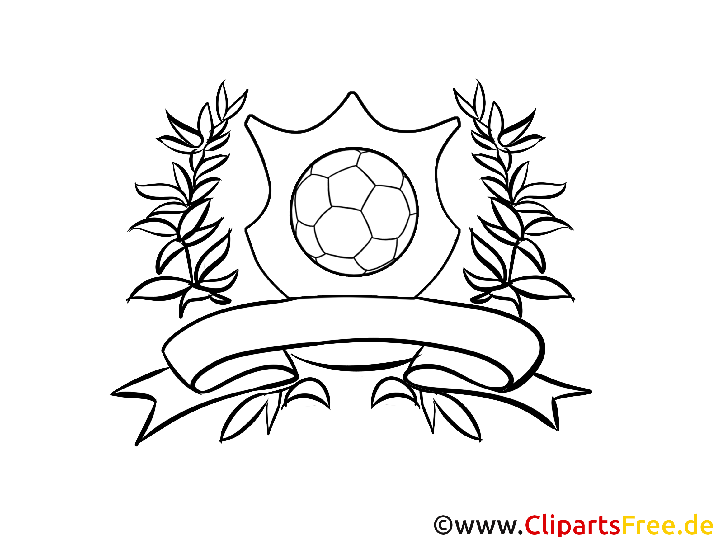 Hier haben wir ein wirklich spannendes Bild zum Ausmalen! Ein großes, rundes Fußballmotiv steht im Zentrum, das sich auf einem gestylten Wappen befindet. Umrahmt von zwei prächtigen Lorbeerzweigen, die ja immer für Erfolg und Sieg stehen, strahlt das Bild förmlich vor Energie. Und da gibt's auch noch ein schönes Banner, das Platz für kreative Texte oder persönliche Botschaften bietet! Zum Beispiel könnte man hier den Namen einer Fußballmannschaft oder das Datum eines großen Spiels eintragen – da sind der Fantasie keine Grenzen gesetzt! Überhaupt, so ein solches Ausmalbild ist doch genau das Richtige für kleine und große Fußballfans!