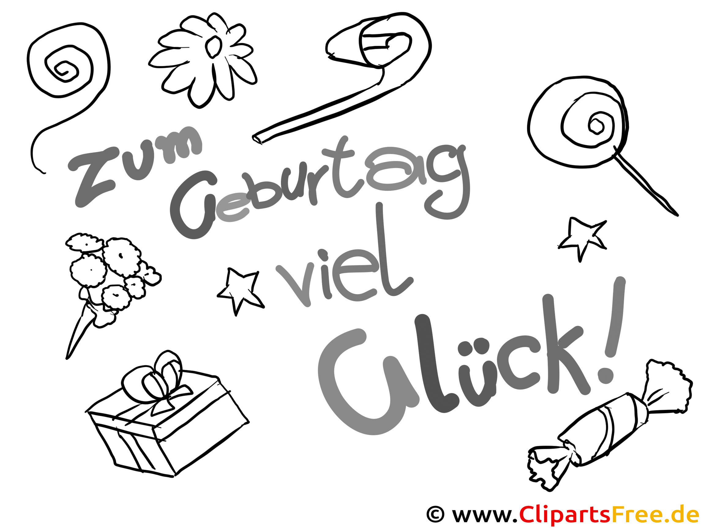 Das Bild zeigt eine fröhliche Geburtstagsbotschaft. Es ist einfach, aber unglaublich liebevoll gestaltet. Da sind Blumen, Luftschlangen, ein großes Geschenk und sogar eine bunte Lutscher-Süßigkeit! Der Text „Zum Geburtstag viel Glück!“ hebt sich schön von den anderen Motiven ab und strahlt so eine gewisse Feierlaune aus. Man könnte fast das fröhliche Lachen hören. Die großen, geschwungenen Buchstaben machen es schwer, nicht in gute Stimmung zu geraten!