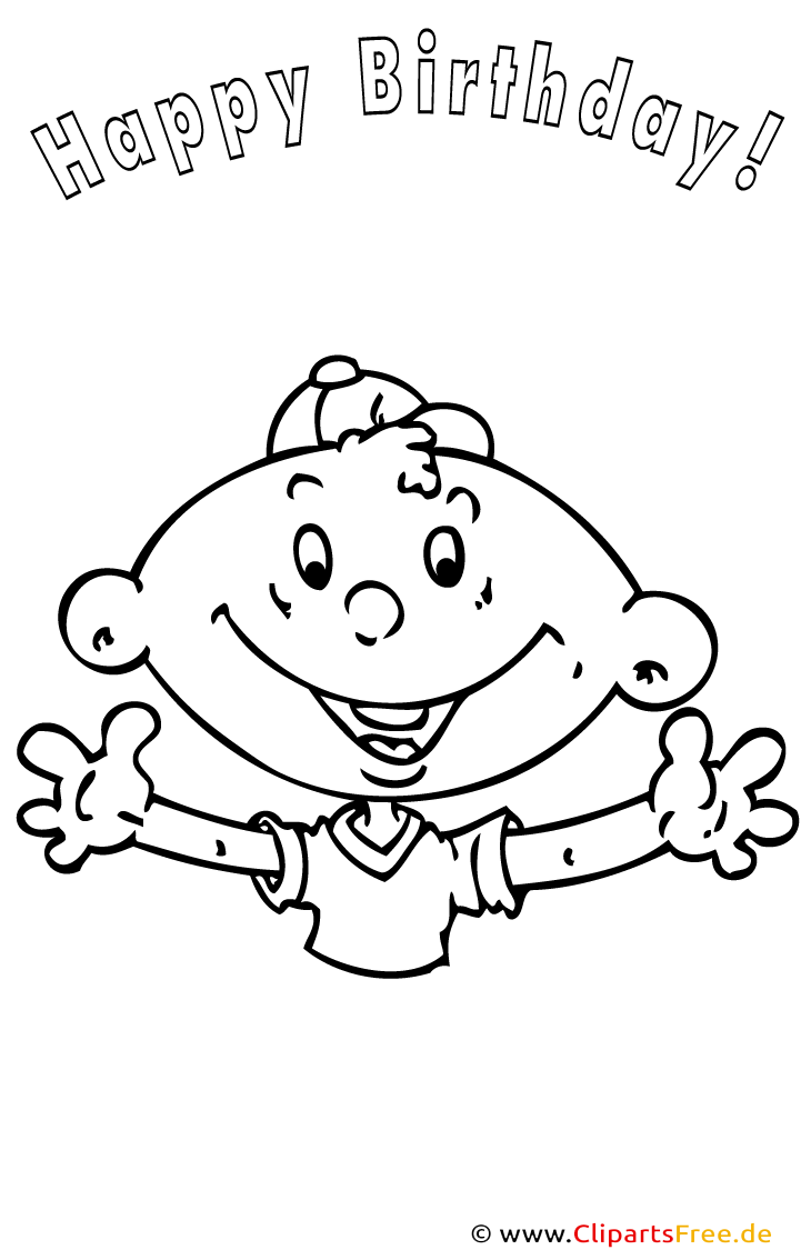Schau dir dieses fröhliche Malbild an! Es zeigt einen netten kleinen Jungen, der begeistert seine Arme ausbreitet, als würde er sagen: „Herzlich willkommen zu meiner Geburtstagsfeier!“ Über ihm prangt in großen, bunten Buchstaben der Schriftzug „Happy Birthday!“. Die Augen strahlen vor Freude, und der Junge trägt eine coole Kappe. Einfach perfekt für die Geburtstagsfeier eines Freundes oder Geschwisters. Hier kann man sich schon richtig ins Feiern hineinversetzen!