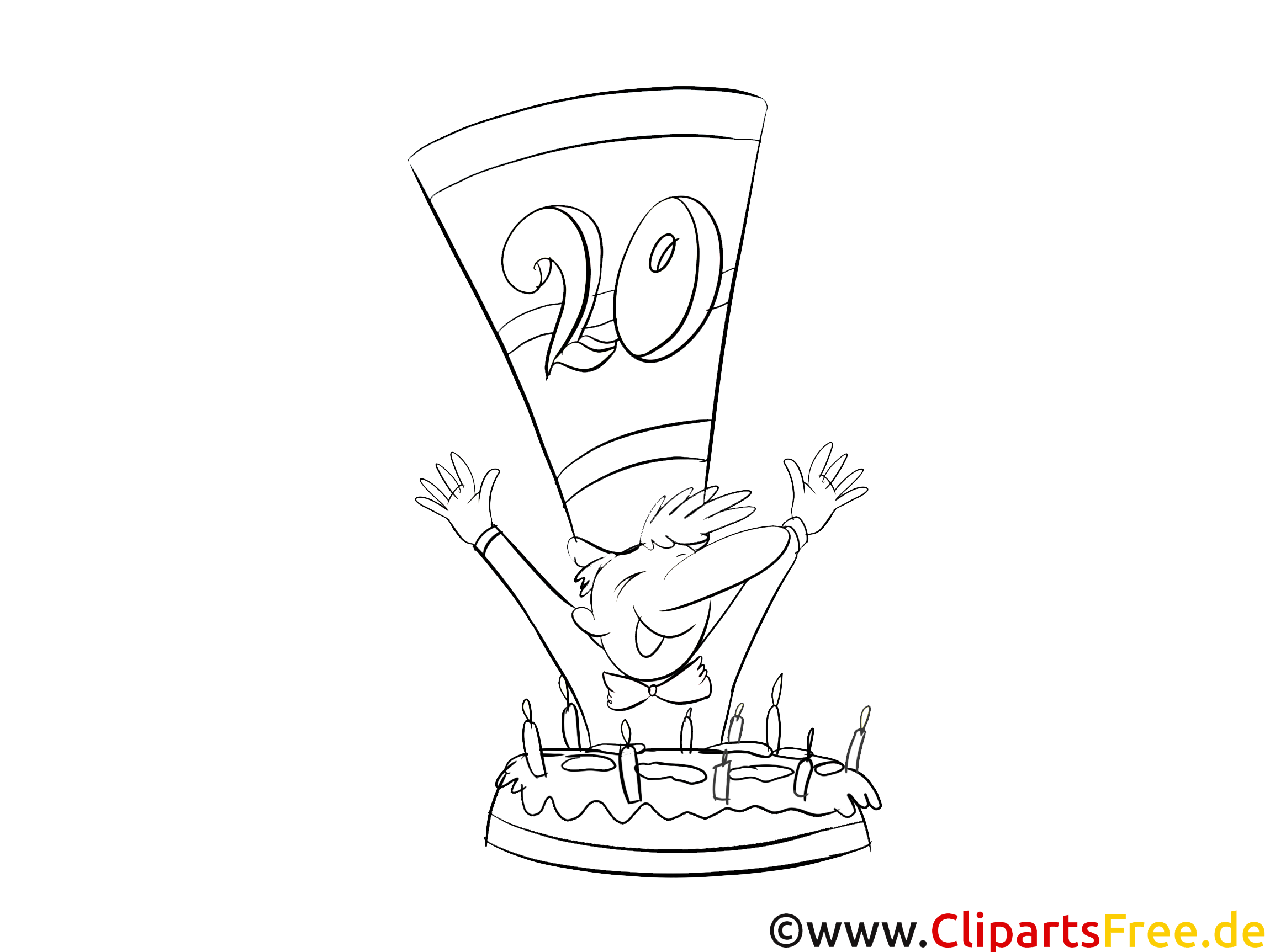 Schau dir dieses fröhliche Motiv an! Ein jubelnder Mensch, der mit offenen Armen eine große Torte voller Kerzen feiert. Oben auf dem Hut steht die Zahl 20 – das macht es perfekt für Geburtstagsfeiern! Die Freude sprüht fast aus dem Bild. Man kann imaginiert hören, wie die Kerzen leise flüstern, während der Geburtstag gefeiert wird. Die Dampfwölkchen der Kerzen bilden einen schönen Kontrast zur ganzen Feierlaune. Ein tolles Bild für alle, die ihren Geburtstag besonders feiern wollen.