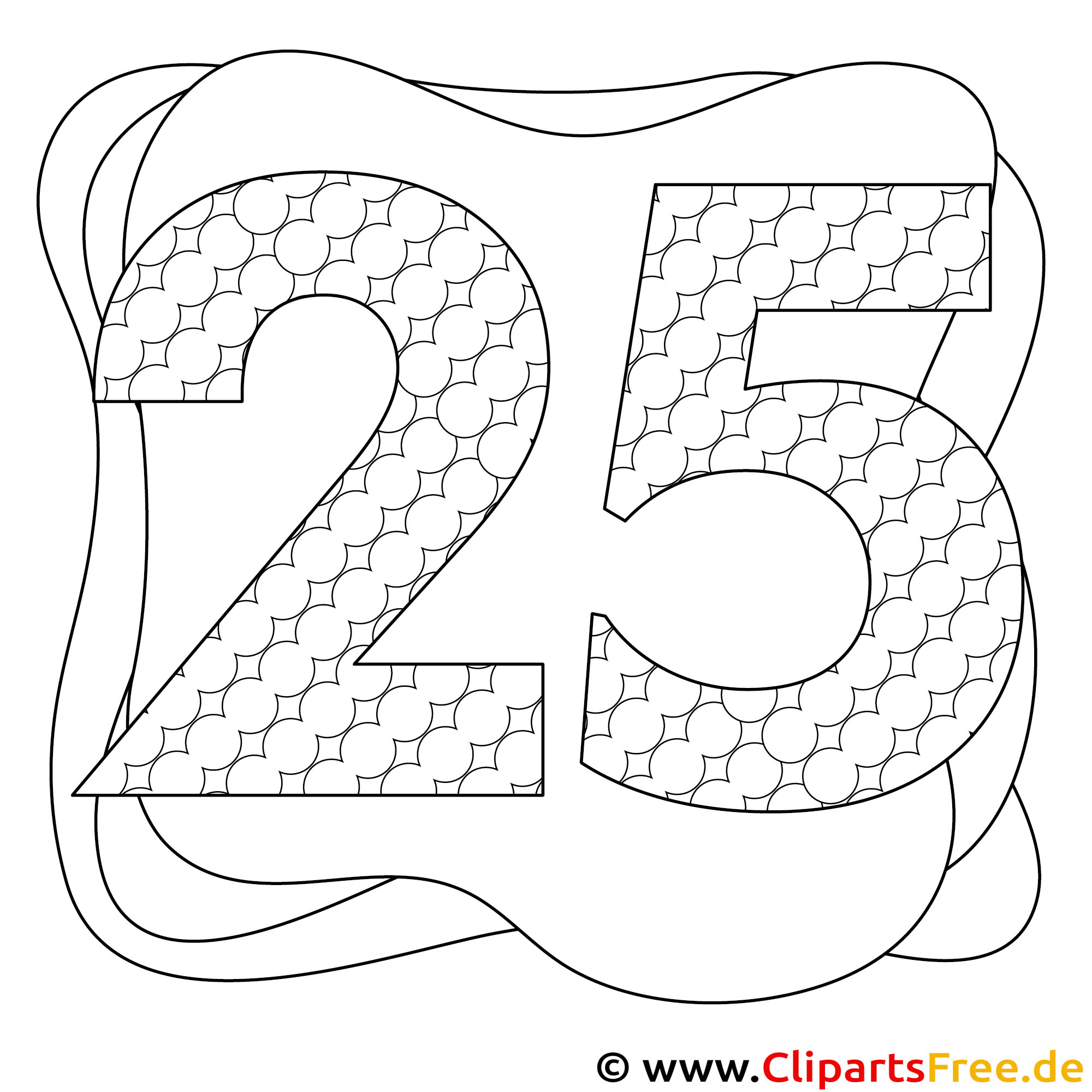 Der Zeichenstil ist einfach, klar und gleichzeitig verspielt. Die Konturen sind dick genug, sodass selbst die kleineren Kinder gut innerhalb der Linien bleiben können — . Das Muster in der Zahl 25 sorgt für zusätzlichen Spaß; die Rundungen und einige geschwungene Linien machen das Bild zu etwas Besonderem. Es ist modern und ansprechend, sodass die Kinder sicher große Freude beim Ausmalen haben werden.