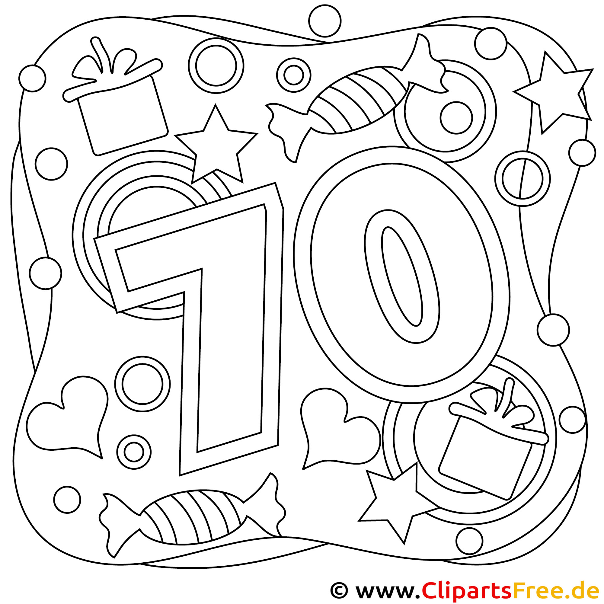 Das Thema dieses Ausmalbilds dreht sich um eine fantastische Geburtstagsfeier. Im Mittelpunkt steht die große Zahl „10“. Darüber hinaus tummeln sich um diese Zahl zahlreiche fröhliche Elemente. Da wären die bunten Geschenke, kleine Herzchen, süße Bonbons und sogar Sterne, die dem Bild einen festlichen und lebhaften Charakter verleihen. Alles in allem ist es eine Einladung zur Kreativität und zur Feier eines ganz besonderen Tages!