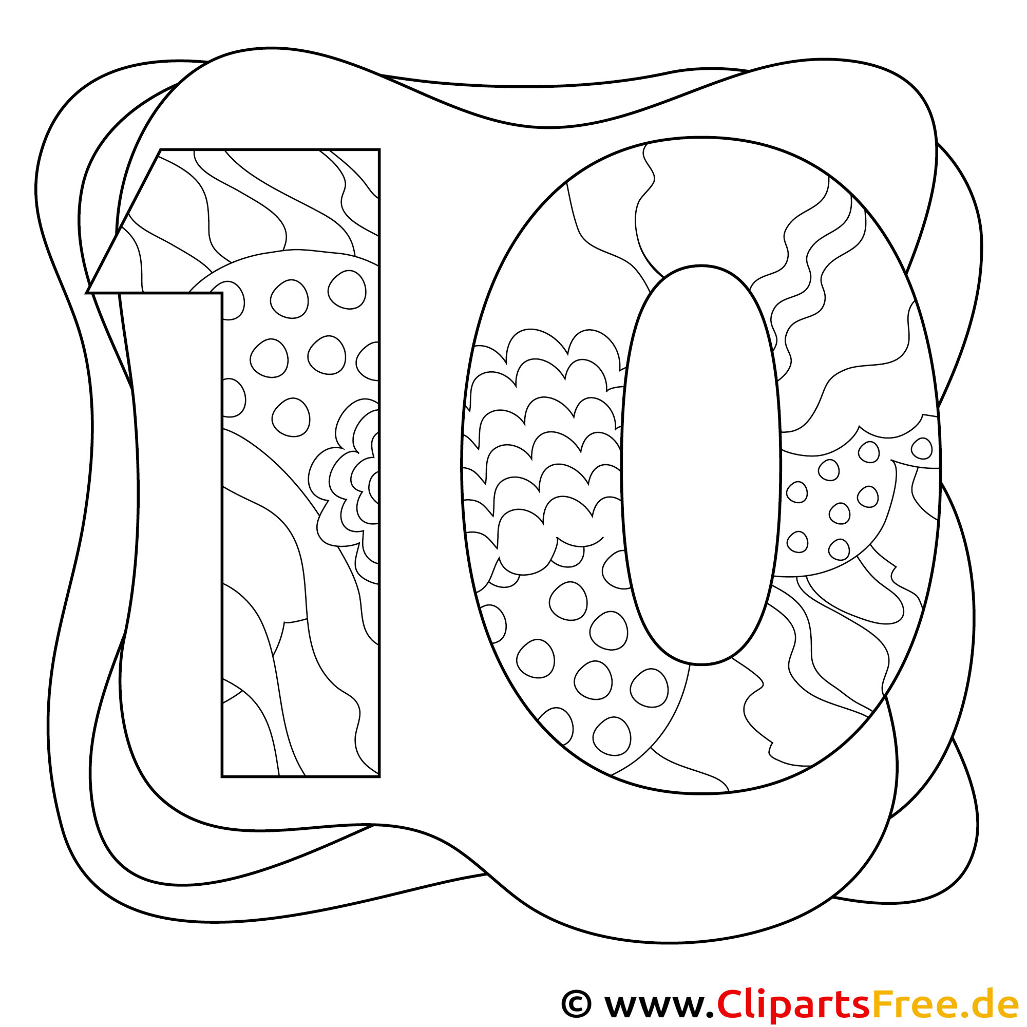 Das hier abgebildete Malbild zeigt die Ziffer "10" in einem kreativen Design, eingebettet in geschwungene Linien und verschiedene Muster. Ehrlich gesagt, ist es ein echter Hingucker! Die verschiedenen Bereiche der Zahl bieten jede Menge Platz für Farbtupfer und kreative Ideen. Die runden Formen und Wellen laden dazu ein, mit Farben zu experimentieren, seien es bunte Stifte, Wasserfarben oder auch Filzstifte. Sehr ansprechend und malerisch, könnte man sagen!