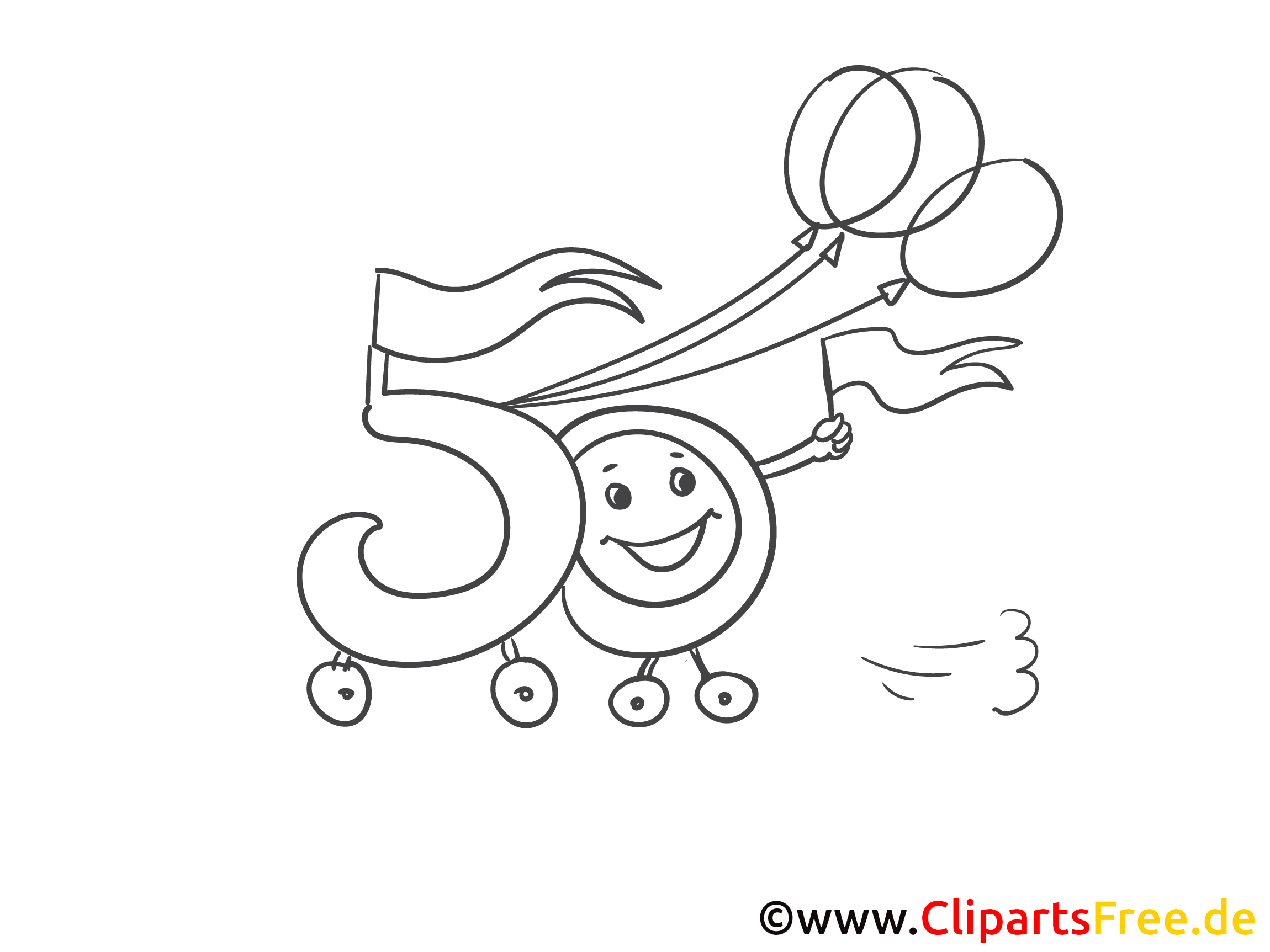 Original-Bild: Fünfzig Luftballons Geburtstag Malvorlage