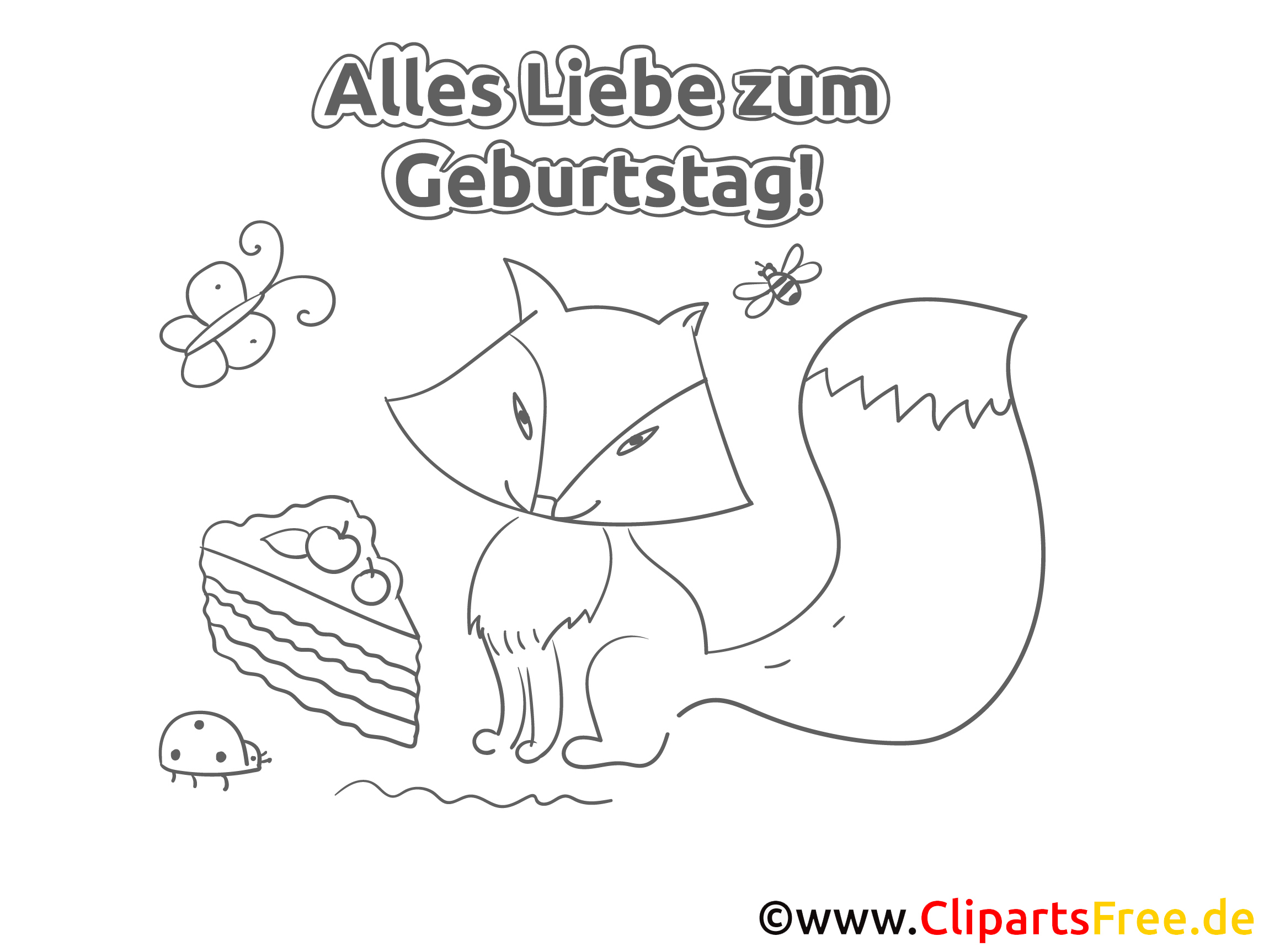 Fuchs Kuchen Geburtstag Ausmalbild-Grusskarte