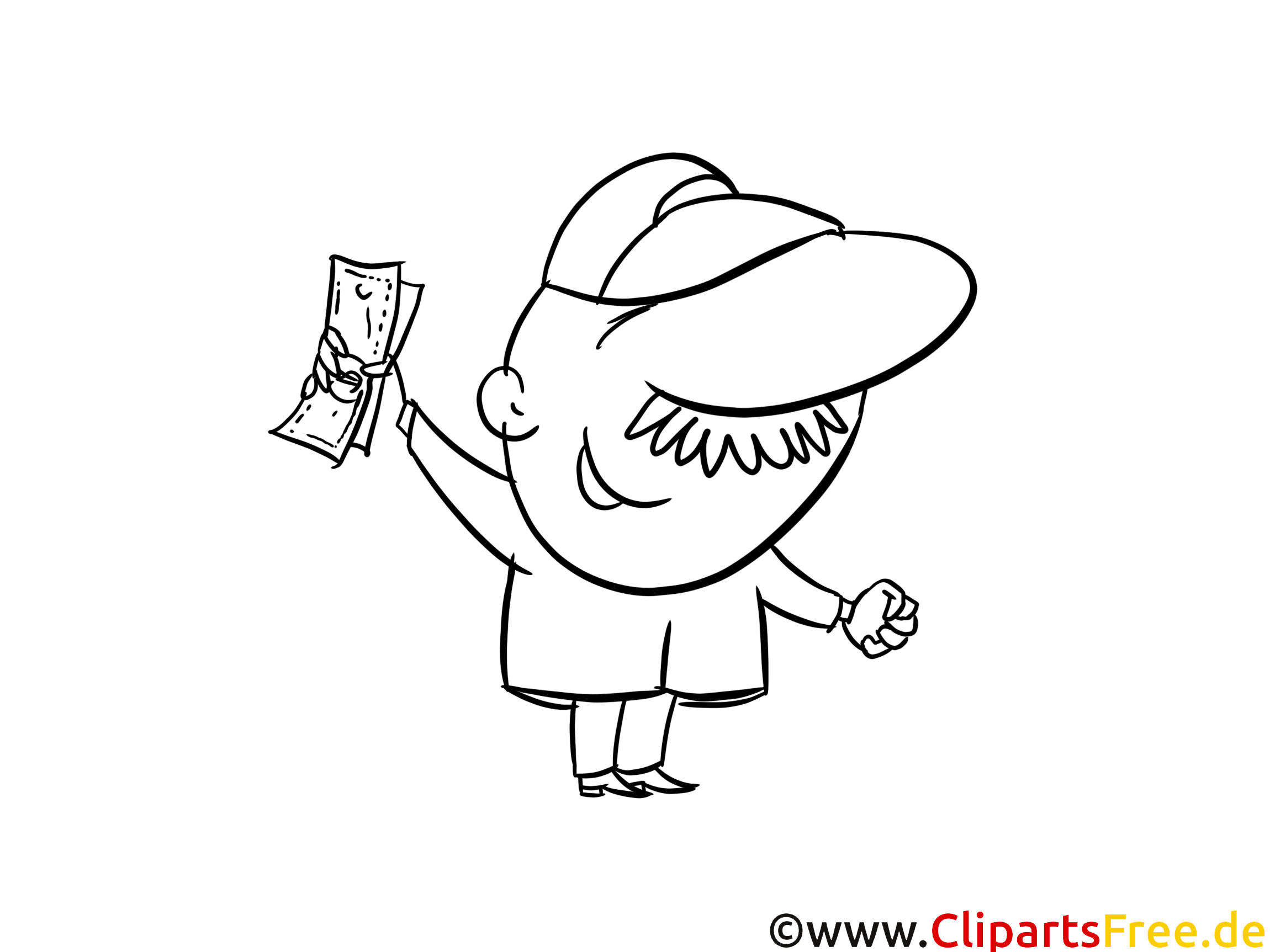 In dieser lustigen Malvorlage sehen wir einen fröhlichen Mann, der mit einem breiten Grinsen einen Geldschein in der Hand hält. Er trägt eine Kappe und hat einen etwas knolligen Kopf mit einem Schnurrbart, was ihn richtig sympathisch macht! Es scheint, als würde er gerade einen tollen Moment genießen – vielleicht hat er gerade einen Glücksgriff gemacht oder ist einfach maximal happy über etwas. Dieser Charakter strahlt eine positive Energie aus, die einfach ansteckend ist!