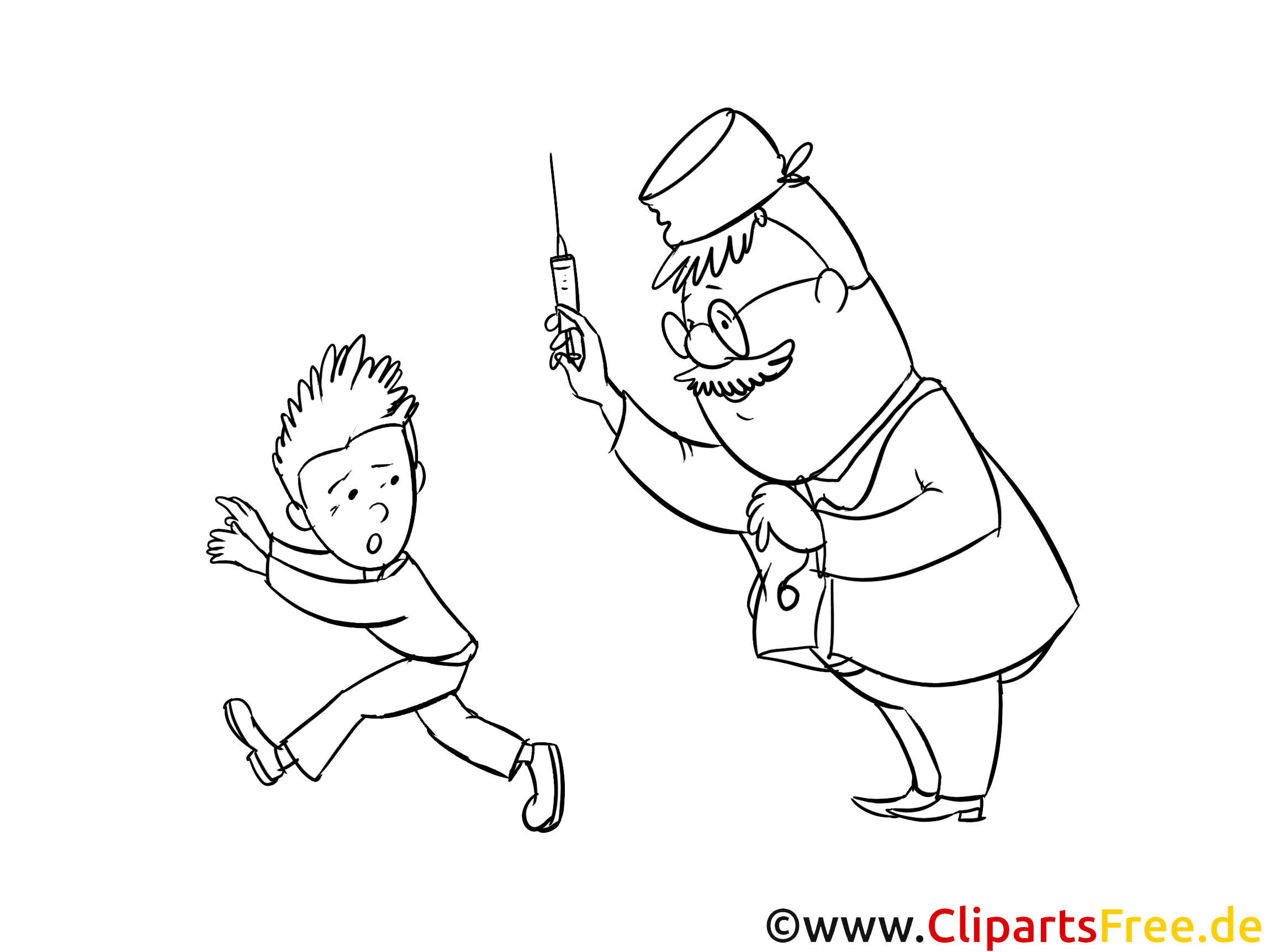 In diesem spannenden Ausmalbild siehst du einen kleinen Jungen, der vor einem freundlichen Arzt davonläuft. Der Arzt, mit einer großen Brille und einem herzlichen Lächeln, hält eine Spritze in der Hand. Der Junge ist ganz in Bewegung, fast so, als würde er ein kleines Abenteuer erleben. Die Situation ist zwar humorvoll, aber dennoch kann man auch die Sorgen der Kinder erkennen. also, Diese Darstellung schafft eine interessante Mischung aus Angst und Vertrauen. tja, Ein Bild, das einige höchst lebhafte Emotionen einfängt!