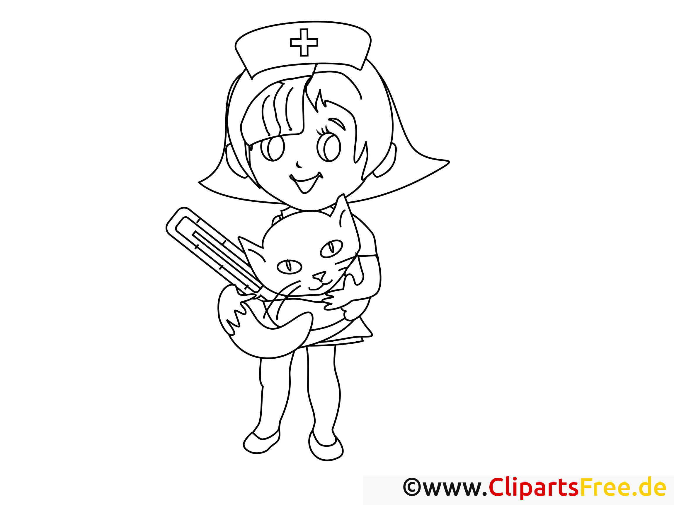 Hier haben wir ein zauberhaftes Ausmalbild von einem fröhlichen Mädchen in einer niedlichen Krankenschwesteruniform. Sie hat eine kleine Mieze im Arm, die ebenso süß aussieht wie sie selbst! Ihr Lächeln strahlt Freundlichkeit aus, und die kleinen Details, wie die Mütze mit dem roten Kreuz, machen das Bild besonders. Man kann sich richtig vorstellen, wie das Mädchen liebevoll auf die Katze aufpasst. Das Motiv zieht garantiert die Aufmerksamkeit der Kleinen an und kann dazu anregen, darüber nachzudenken, wie wichtig Pflege und Aufmerksamkeit sind.