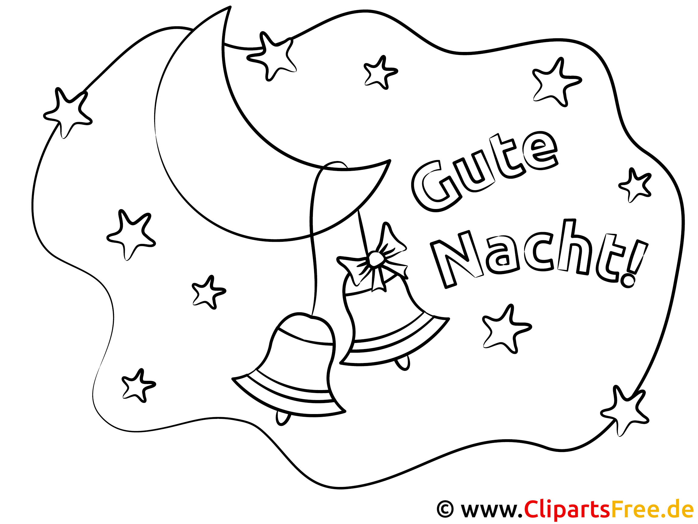 Glocken auf dem Mond Gute Nacht gratis Bilder zum Ausmalen