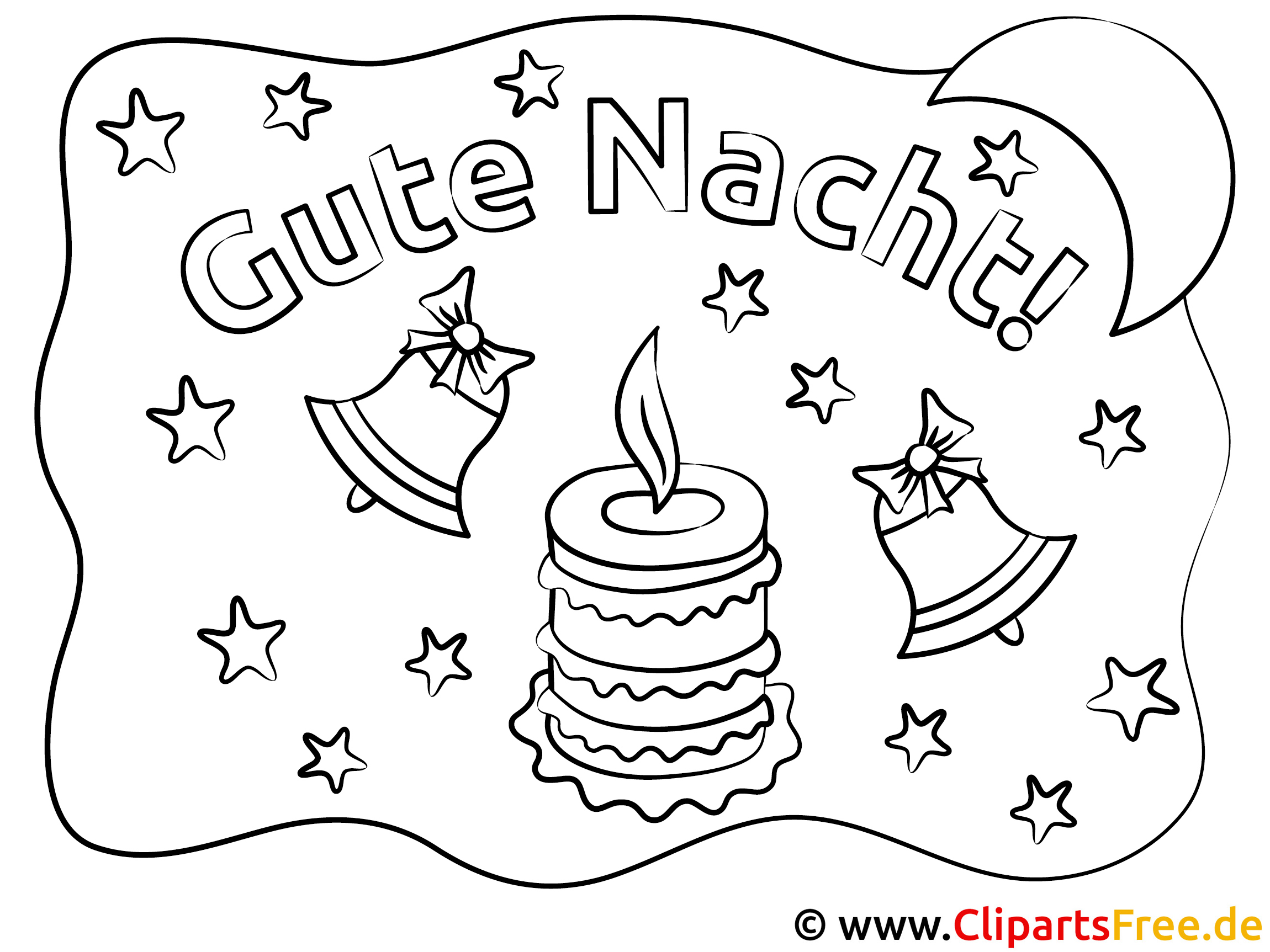Hier haben wir ein zauberhaftes Ausmalbild, das die Stimmung einer angenehmen, ruhigen Nacht einfängt. Mit einem schönen Kuchen, dessen Kerze hell leuchtet, strahlt das Bild eine herzliche Gute-Nacht-Botschaft aus. Umgeben von süßen Sternen und einer sanften Mondfigur, hat es etwas Beruhigendes. Die beiden Glöckchen mit Schleifen bringen eine fröhliche Note ins Motiv. Man könnte sagen, es ist wie eine kuschelige Gute-Nacht-Geschichte, die nur darauf wartet, koloriert zu werden!