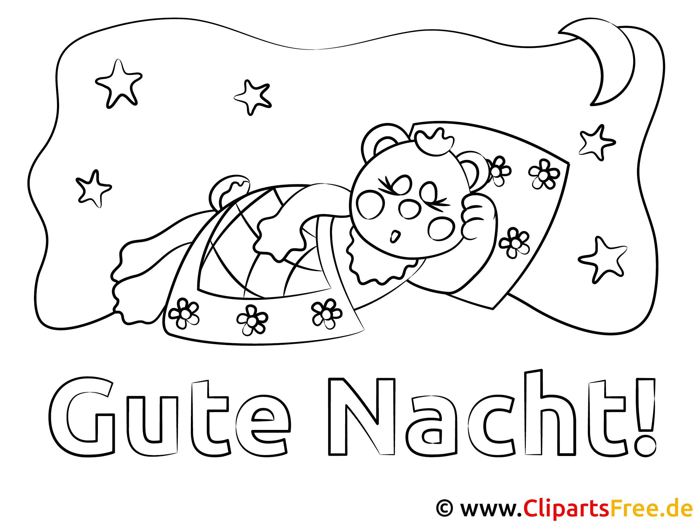 In unserem süßen Ausmalbild liegt ein kleiner Bärchenfreund gemütlich in seinem Bett und sagt „Gute Nacht!“ Der Bär hat breite, fröhliche Ohren und ein schüchternes Grinsen auf seinem Gesicht. Um ihn herum strahlen die Sterne am Himmel, und ein kleiner Mond schaut winkend vorbei. Die Decke ist bunt mit vielen kleinen Blumen und Mustern. Es ist so niedlich und irgendwie beruhigend – perfekt fürs Schlafengehen!