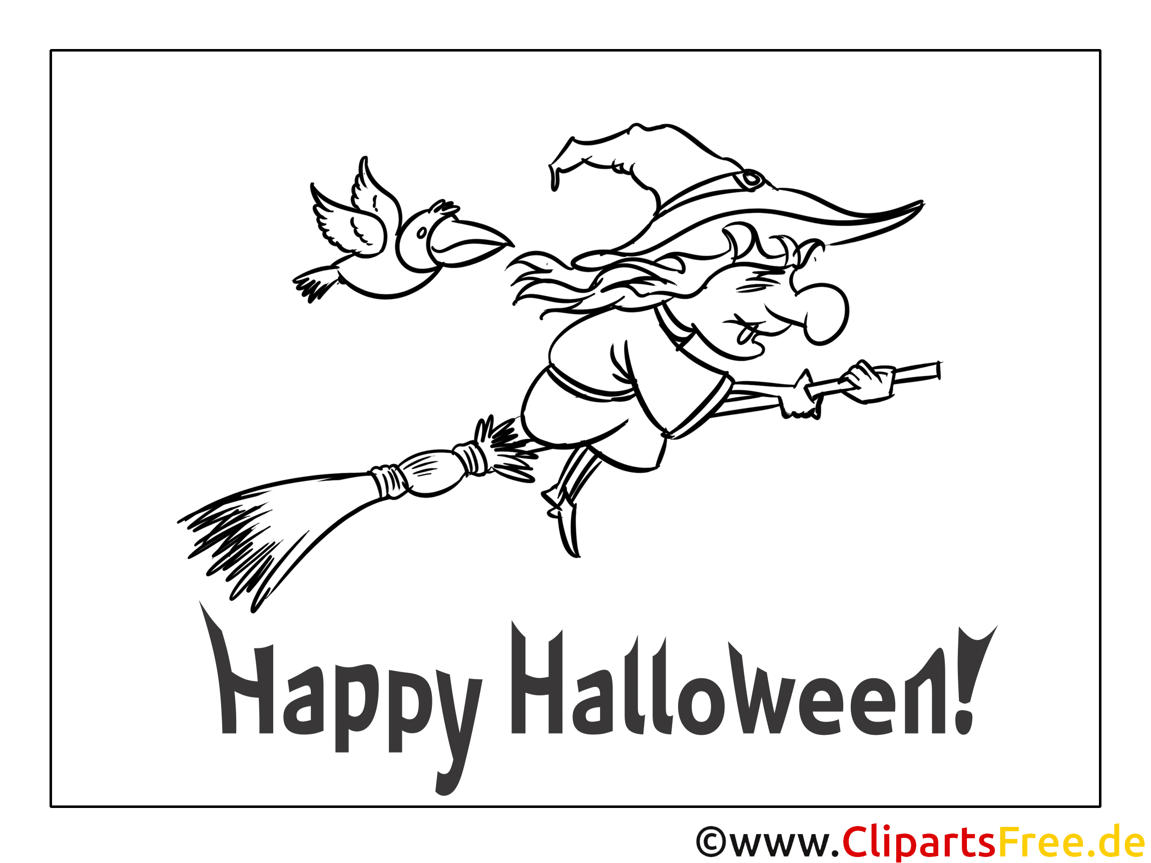 Fliegende Hexe auf Besen Bild, Malvorlage, Ausmalbild