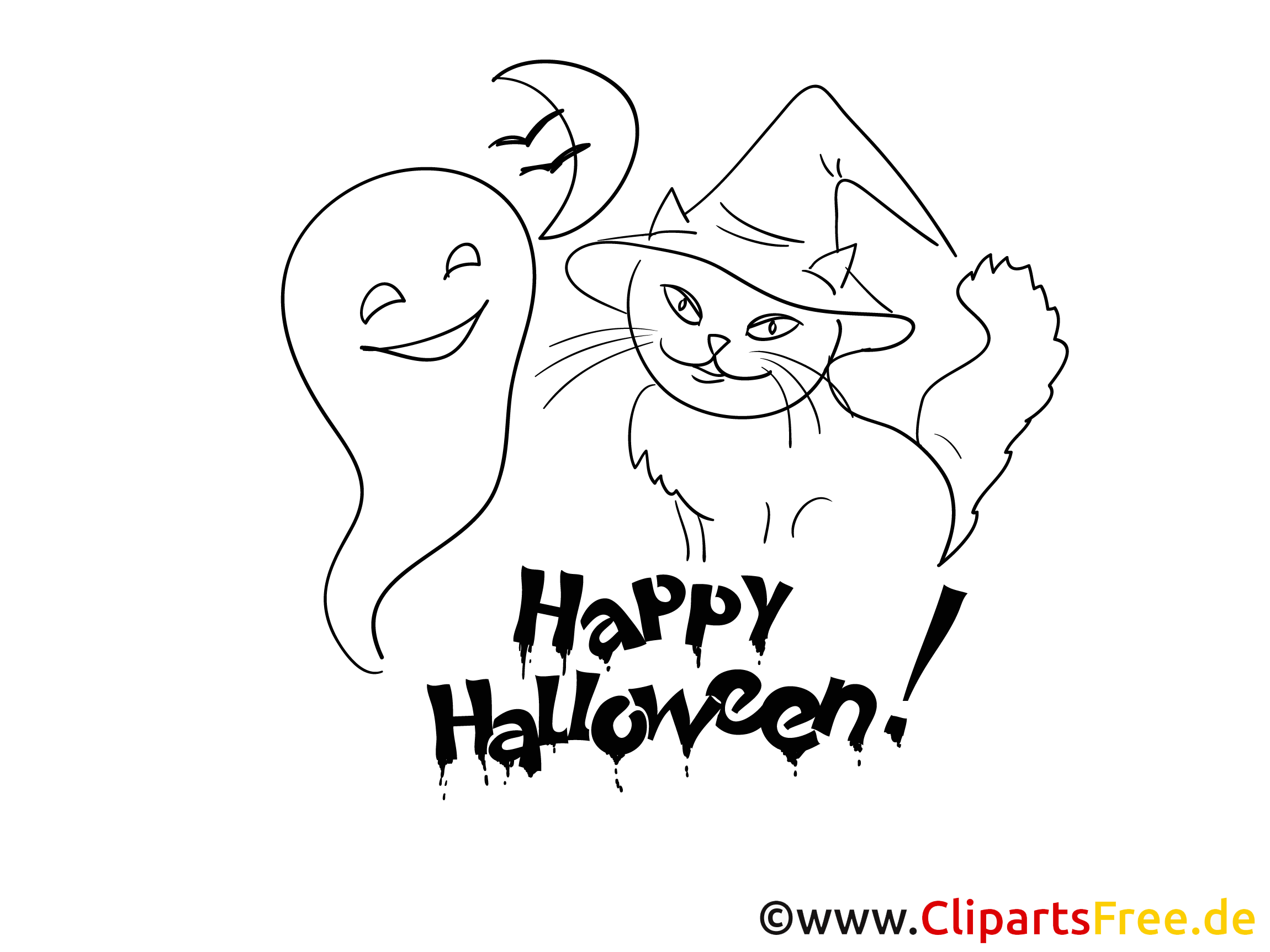 Hexenkatze und Gespenst Malvorlage für kleine Kinder