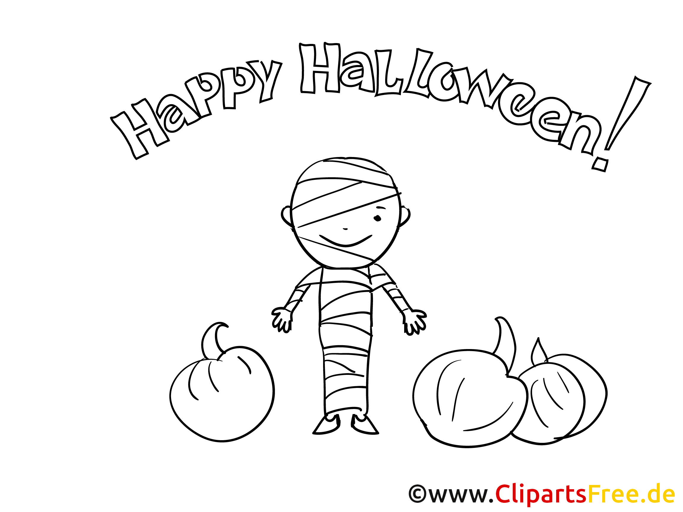 Schau dir dieses süße Ausmalbild an! Hier sehen wir einen kleinen Mumien-Jungen, der fröhlich zwischen zwei großen, runden Kürbissen steht. Er ist lustig und hat ein breites Grinsen im Gesicht. Oben steht in großen, auffälligen Buchstaben "Happy Halloween!" Was für ein tolles, freundliches Motiv für die spooktacular Zeit des Jahres! Perfekt für Kinder, die gerne künstlerisch aktiv sind und Halloween feiern möchten.
