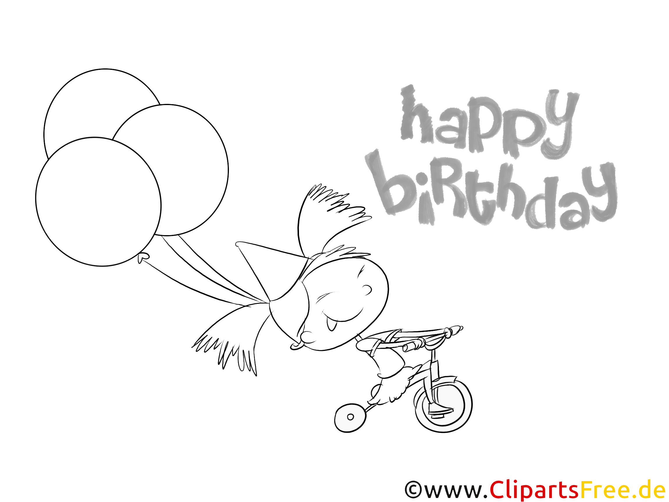 In dieser fröhlichen Malvorlage sehen wir ein Mädchen, das gerade auf einem kleinen Fahrrad fährt. Aber nicht einfach so – sie hat bunte Luftballons in der Hand, die in den blauen Himmel aufsteigen. Ihre Mütze ist wie ein kleiner Punkt auf ihrem Kopf, und man merkt richtig, wie viel Spaß sie hat. Ob das vielleicht ihr Geburtstag ist? Die Schriftzüge „happy birthday“ geben einen Hinweis darauf. Es ist bestimmt ein tolles Ereignis, das gefeiert wird!