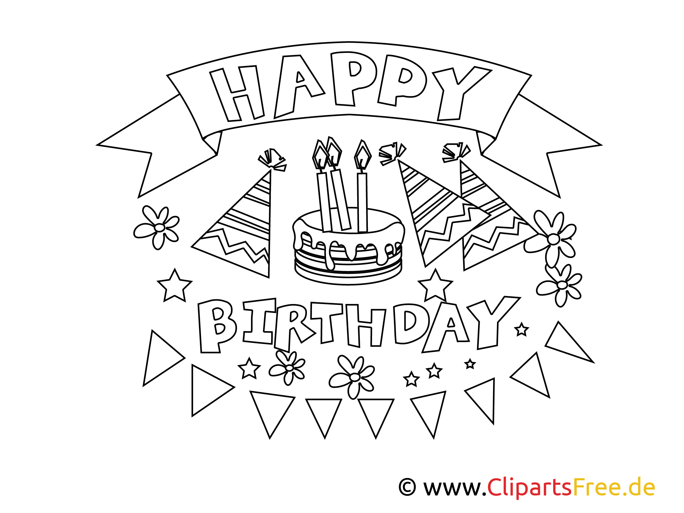 Original-Bild: Happy Birthday Malvorlage, Ausmalbild