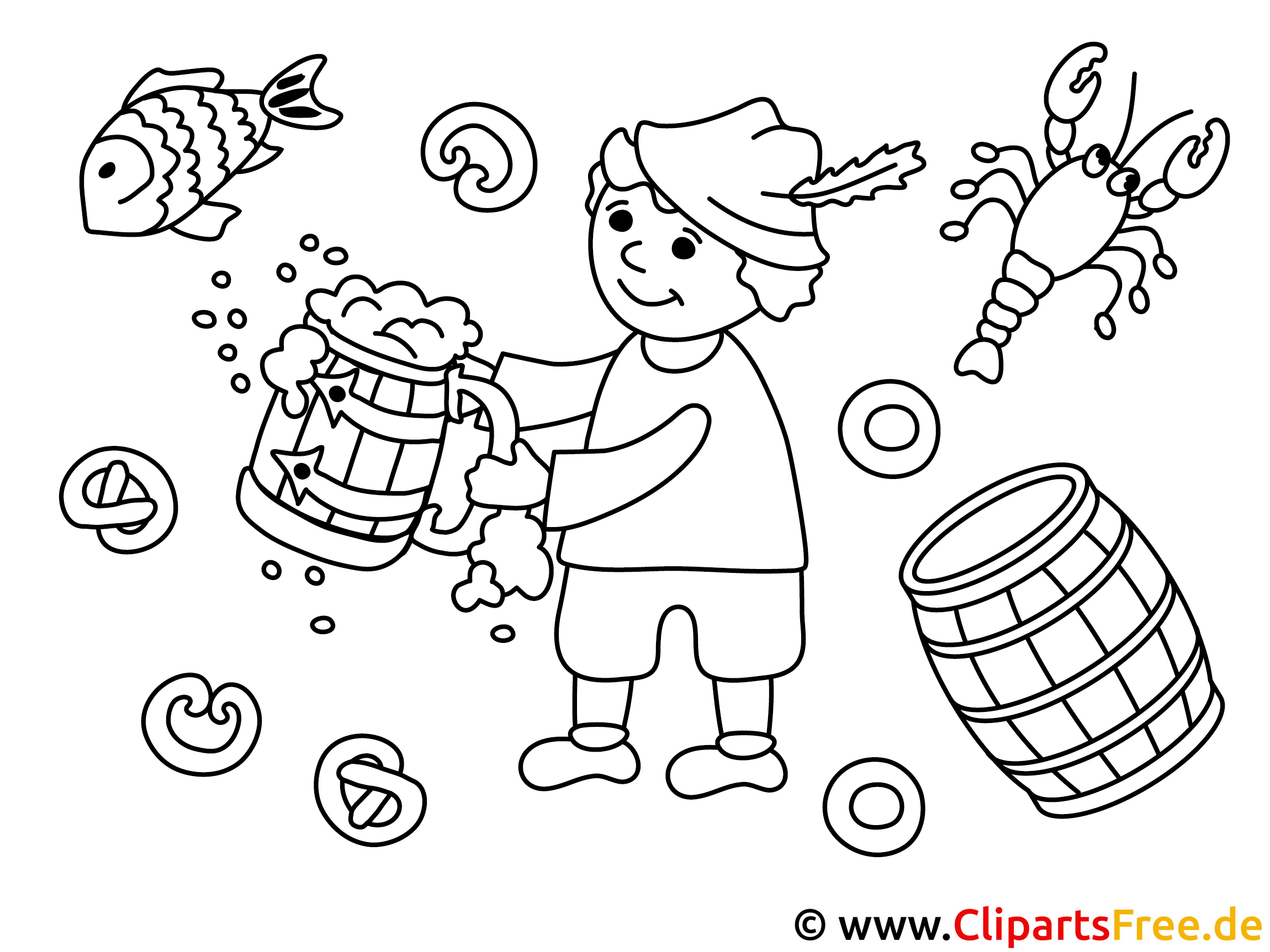 Dieses bezaubernde Ausmalbild zeigt einen fröhlichen Jungen, der mit einem voll gefüllten Krug in den Händen steht. Man sieht, dass er kräftig schüttelt – es spritzt sogar ein bisschen! Um ihn herum sind allerlei Leckereien zu entdecken: Fische, Brezeln und sogar ein neugieriger Krebs. Ehrlich gesagt, es ist fast wie auf einem kleinen Fest. Jeder sollte ihn einfach mal anlächeln – sieht ganz so aus, als hätte er viel Spaß!