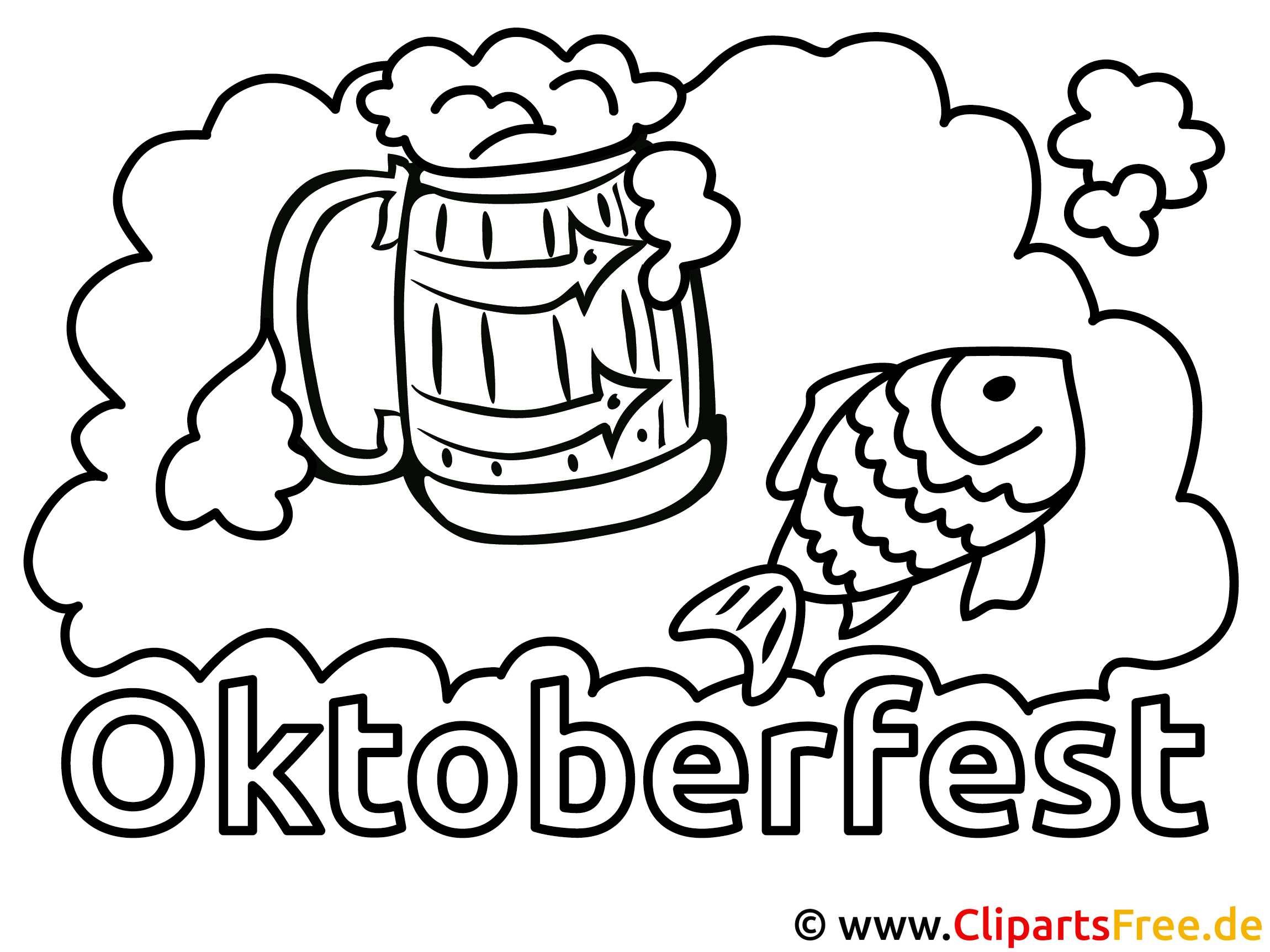 Das Motiv dieses Ausmalbildes zeigt ein fröhliches Oktoberfest-Szenario. Im Vordergrund ist ein großes Bierkrug zu sehen – schaumig und einladend, als wäre es frisch gezapft! Wenn man ganz genau hinschaut, kann man sogar die fein ausgearbeiteten Holzfäden auf dem Krug erkennen. Daneben schwimmt ein kleiner Fisch, was vielleicht an die traditionellen Fischgerichte erinnert, die oft während dieser Feierlichkeiten serviert werden. Und dann der Schriftzug „Oktoberfest“ unterhalb – dicker und prall, für all das, was dieser festliche Anlass bedeutet.