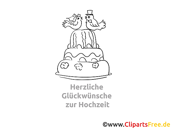 So, schaut euch mal dieses süße Malbild an! Es zeigt eine Hochzeitstorte, die ganz in Weiß gehalten ist – mit toll geschwungenen Linien und kleinen dekorativen Wolken. Oben drauf sitzen zwei fröhliche Vögel, die ein bisschen wie Turteltauben wirken und total glücklich scheinen. Der eine trägt sogar einen kleinen Zylinder, und der andere hat vielleicht einen schönen Blumenkranz auf dem Kopf. „Herzliche Glückwünsche zur Hochzeit“ steht in einer schnörkeligen Schrift darunter. ähm, Super passend für einen besonderen Anlass, nicht wahr?