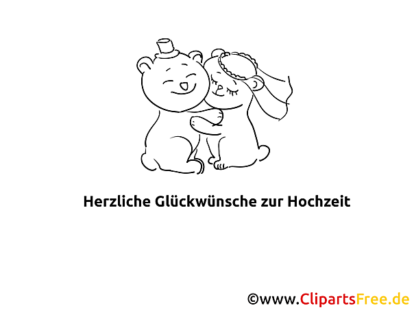 Hier haben wir ein zauberhaftes Bild von zwei niedlichen Bären, die sich umarmen. Der eine trägt sogar einen kleinen Hut! Wie süß ist das denn? Die beiden scheinen voller Freude zu sein, und die Szene strahlt einfach Liebe und Glück aus. Dazu steht der Schriftzug „Herzliche Glückwünsche zur Hochzeit“ darunter. Das Bild wirkt sehr einladend und ist perfekt, um die Gefühle zu diesem besonderen Anlass festzuhalten. Ganz praktisch, um eine persönliche Karte zu gestalten oder einfach nur zum Ausmalen.