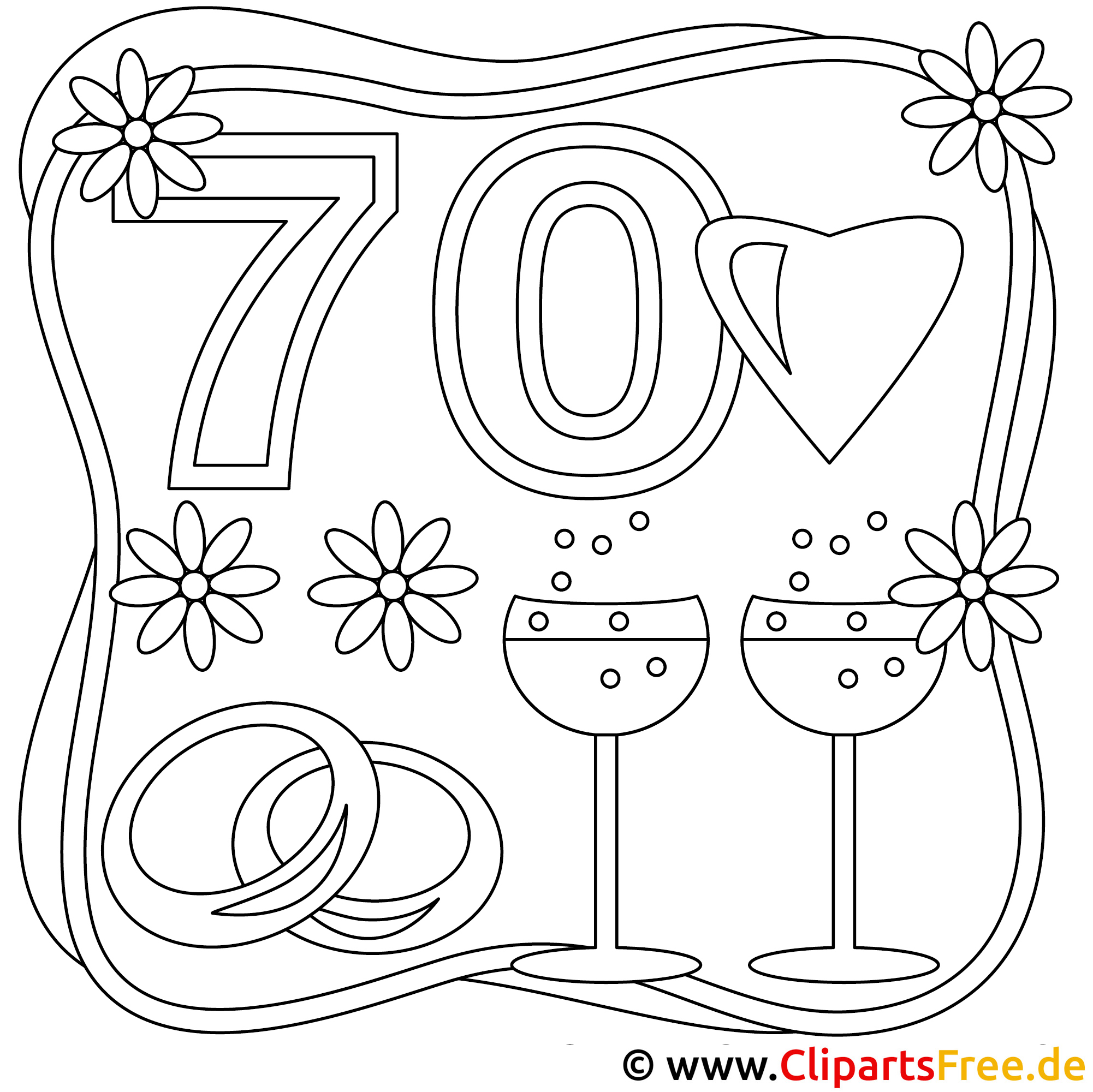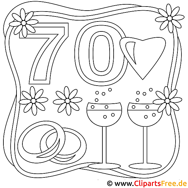 Das Ausmalbild, das hier zu sehen ist, ist fröhlich und festlich gestaltet. Es zeigt die Zahl 70, die im Mittelpunkt steht – eine klare Aussage, die jede Feier verkörpert! Um die Zahl herum sind hübsche, kleine Blumen angedeutet, die dem Bild eine blühende Frische verleihen. Außerdem gibt es zwei Gläser, die bereitstehen, um auf diesen besonderen Anlass anzustoßen. Und ganz oben prangt ein herzförmiges Symbol – das komplette Bild atmet Freude und Feiern! Es ist eine tolle Vorlage, die so viel Spaß macht.