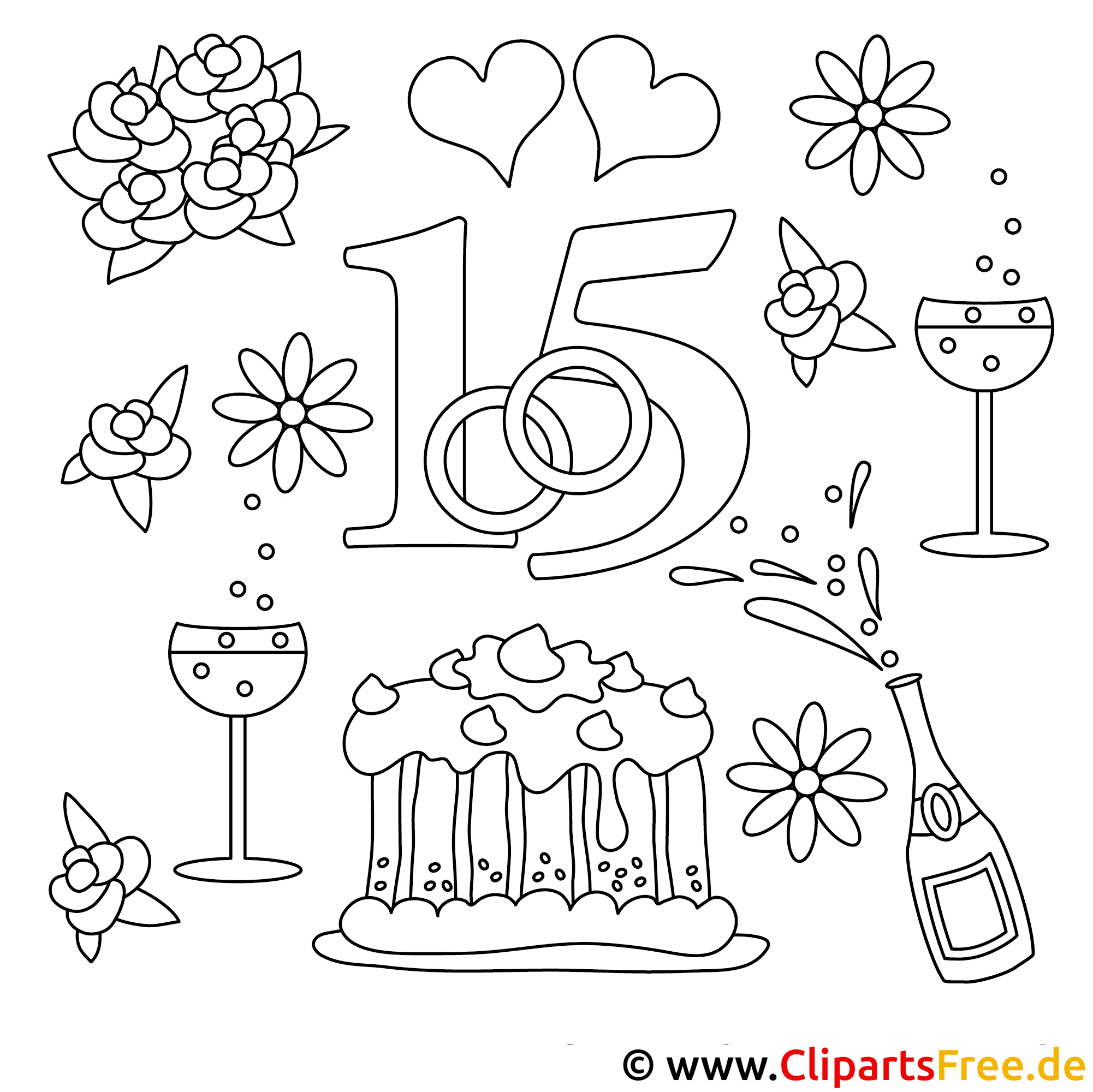 Das Ausmalbild zeigt ein fröhliches Motiv zum Feiern: Die Zahl 15 steht im Mittelpunkt, umgeben von bunten Herzen, Blumen und fröhlichen Gläsern. Ein herrlicher Kuchen mit einer wunderbaren Dekoration aus Sahne und einer Spritzflasche, die Schaum spritzt. Ideal für alle, die einen besonderen Tag feiern wollen, sei es ein Geburtstag oder ein Jubiläum. Die verspielten Elemente laden dazu ein, kreativ zu werden. Da wird sicherlich jede Menge Spaß beim Ausmalen entstehen!