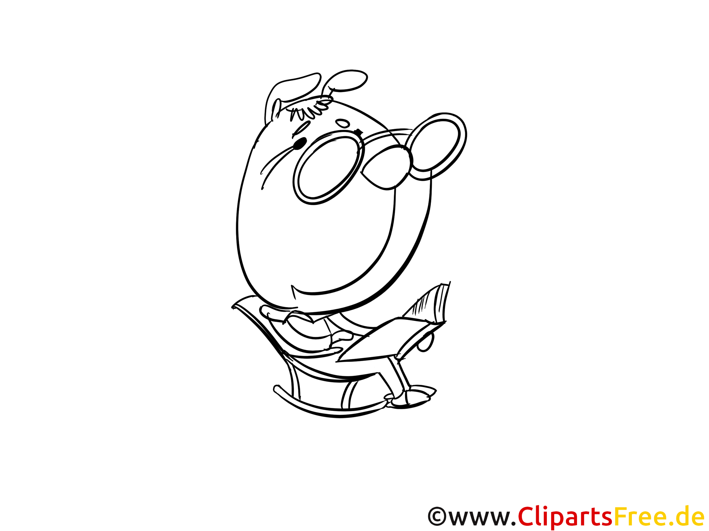 Das Ausmalbild zeigt einen fröhlichen, runden Charakter, der sich gemütlich in einem Schaukelstuhl entspannt. Mit seiner großen Brille und dem breit lächelnden Gesicht sieht er richtig zufrieden aus, während er ein Buch liest. Die Frisur ist simpel, aber für diesen kleinen Charakter sehr charmant. Man könnte fast denken, er genießt seinen Nachmittag mit einer guten Geschichte oder wirft einen Blick in seine Lieblingszeitschrift. Der Schaukelstuhl bringt eine gewisse Behaglichkeit mit sich, als wäre er in seinem eigenen kleinen Rückzugsort.... Ideal, um sich hinzusetzen und in eine fantasievolle Welt einzutauchen.