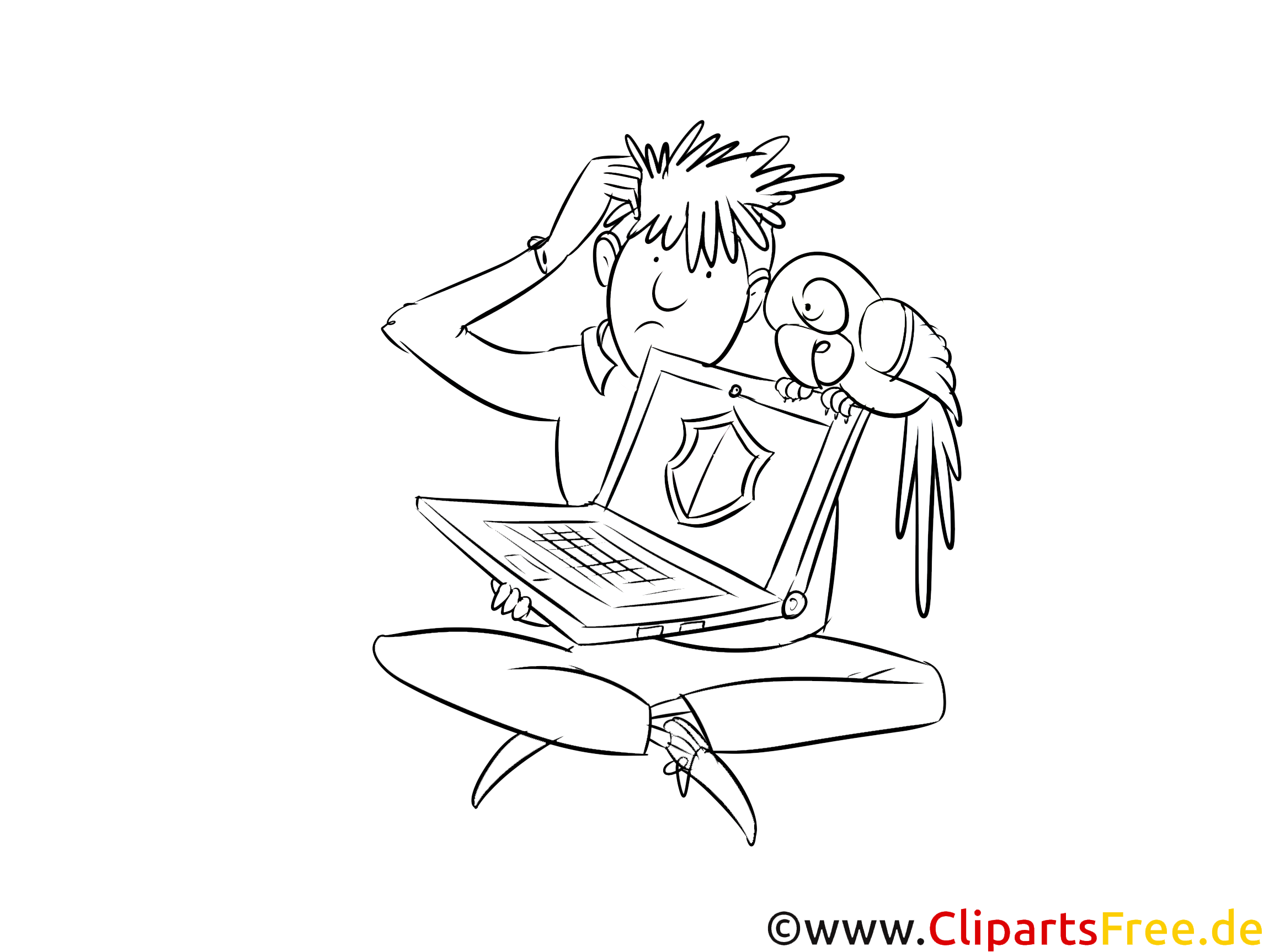Mensch mit Notebook Bild, Clipart, Illustration schwarz-weiß zum Malen