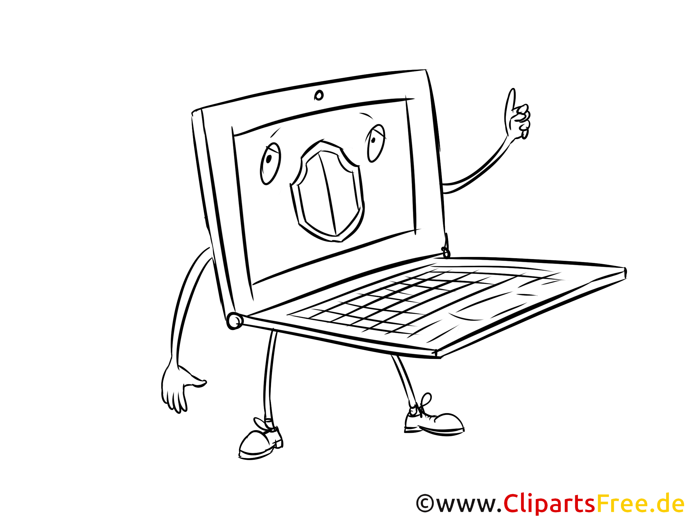 Notebook Bild, Clipart, Illustration schwarz-weiß zum Ausmalen